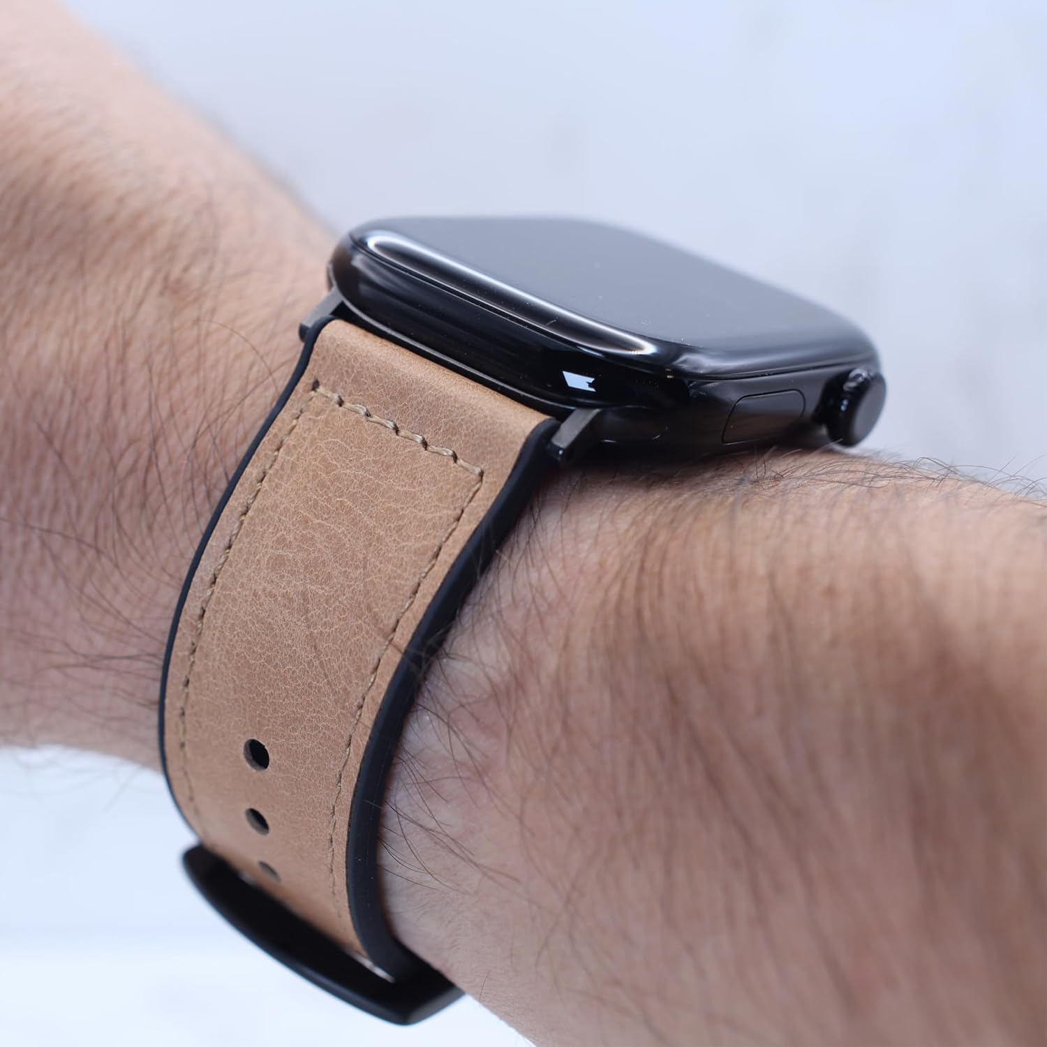 Enhance your Apple Watch Series 10 with this sleek, high-quality leather band, specially designed for a perfect fit with Jet Black and Slate models. The band features a premium leather outer surface for a sophisticated look, while the inner lining is made of durable silicone rubber for added comfort and performance. With a 24mm width at the adapters, this band is precisely crafted to complement the Series 10 case, offering a unique hybrid design that’s both sweatproof and waterproof. Enjoy flexibility and comfort all day, whether at work or the gym!