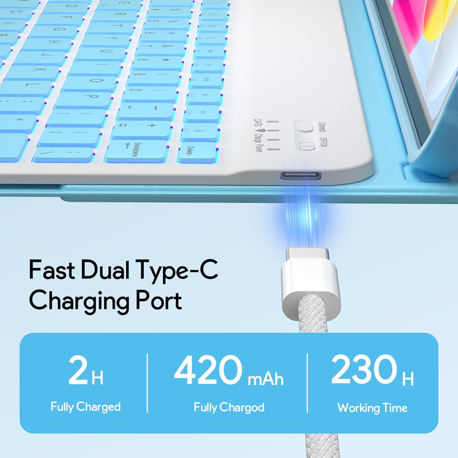 | BuiltIn Media | 7-Color Backlit Wireless Detachable Keyboaed, Compatible for iPad 11th & 10th gen Case, USB Cable, User Manual |