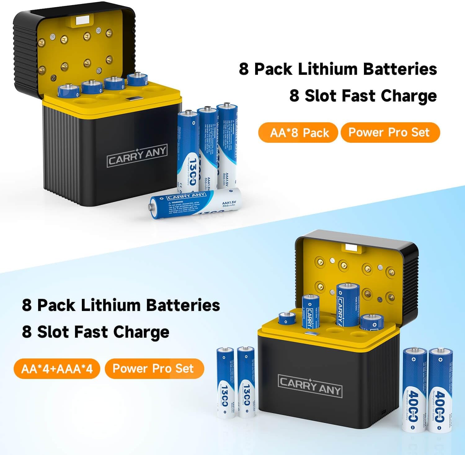 | BuiltIn Media | 1 Pack Charger with Smart Charging(8 Slots), 8 Pack Rechargeable aaa lithium batteries |