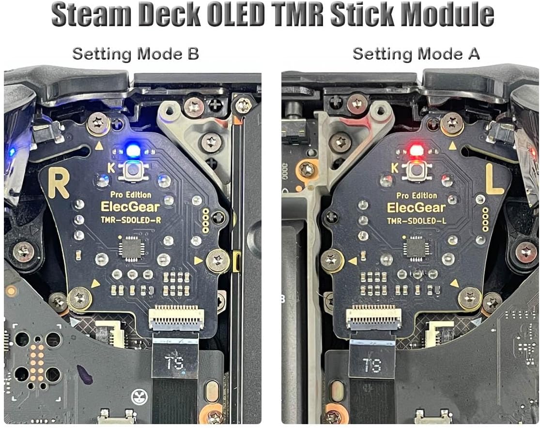 Model: TMR-SDOLED TMR joystick Modules work with Steam Deck OLED Direct Replacement for Left/Right Control Sticks MCU Hardware Calibration Better than Official All the necessary Teardown Tools included 🔺Reminders: 1. Works with the second OLED edition of Steam Deck. Not for the first LCD 2. Moderate soldering tools and skill required for the replacing operation 3. Refer to the video on the same product ID of U.S. Amazon What’s in the box: Left and Right Stick Modules 1x T6 Screwdriver 1x Plastic Pry Tool