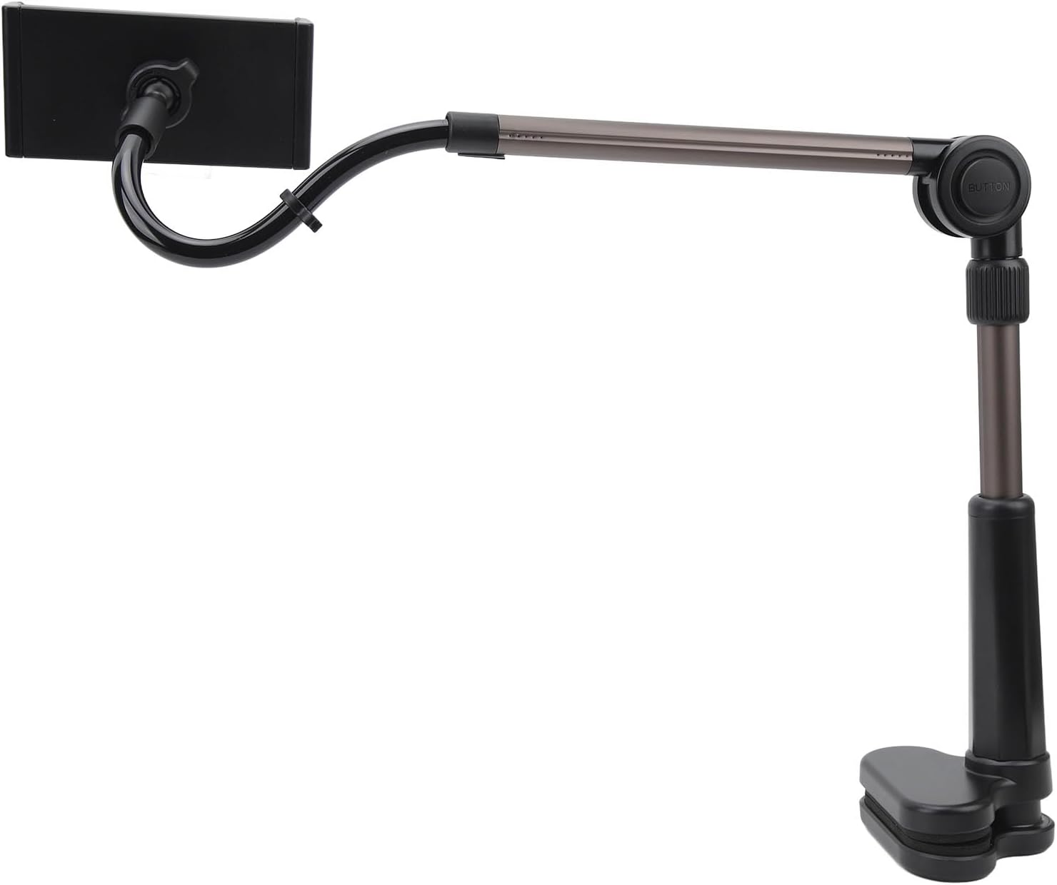 Features:1. Setting up our tablet clamp holder is a breeze. It requires no additional tools and can be easily installed within minutes. Simply clamp it onto the desired surface, adjust the gooseneck arm and head to your desired position, and you're ready to use your device. It's the perfect solution for busy individuals who need a quick and easy setup.2. Our tablet clamp holder is not just for tablets and phones. It can also hold e-readers, portable gaming devices, and even lightweight laptops. Whether you're working, studying, or simply relaxing, this holder provides a convenient and nice solution for all your digital devices.Specification:Item Type: Tablet Clamp HolderMaterial: Aluminum AlloyColor: BlackFeature: New StyleWeight: Approx. 482g/17ozPackage List:1 x Tablet Clamp Holder1 x Chinese and English User Manual
