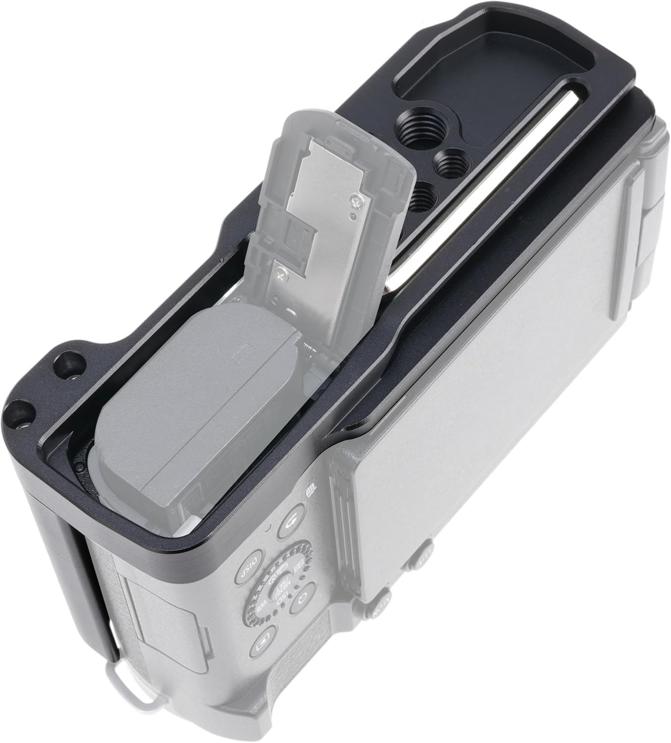 Features: 🛠️ Premium Durable Construction: Featuring a L-shaped handle and base plate both CNC-machined from lightweight yet strong aluminum alloy, ensuring lasting durability and a precise fit. 🖐️ Ergonomic Design with Full Accessibility: Precision-engineered for the Lumix S9 body, ensuring no blockage of the flip screen, battery compartment, buttons, or ports, while providing a secure, comfortable grip. 🔒 Arca-Swiss Standard Compatibility: The integrated quick release plate boasts a universal Arca-Swiss dovetail design, ensuring swift, secure, and reliable attachment to virtually any Arca-type tripod head, monopod, slider, or gimbal. ⚡ Quick & Easy Installation: Mounts securely to your Lumix S9's tripod socket in seconds using the included 1/4"-20 screw. The raised edges and silicone padding protect the camera’s finish from scratches while maintaining a sleek profile. ✨ Ultra-Lightweight & Compact: Weighing only 93g, it adds minimal weight while significantly improving handling and reducing fatigue during handheld shooting and travel. Specification:Material: Aluminum alloy Processing technology: CNC machining Surface treatment: Anodizing Color Optional: Black Size:127*70*38mm/5*2.76*1.49inch(L*H*W) Net weight: 93g/3.28oz Package include:1* L-Shaped Handle with Quick Release Plate for Panasonic Lumix S9 Camera Note: The camera and tripod are not included.