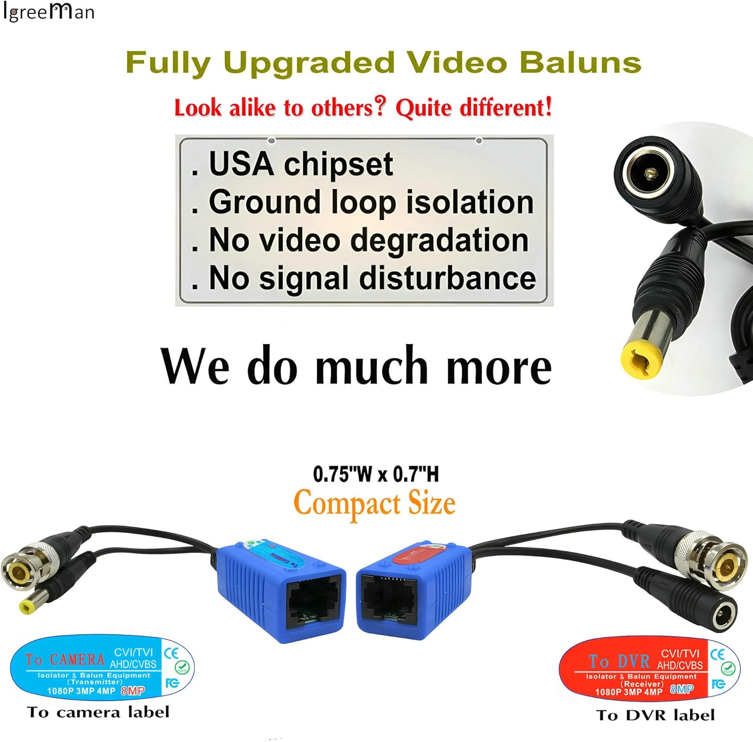 Experience peace of mind like never before with our SGUESIKR Video Balun – your ultimate surveillance companion. This upgraded device helps in transmitting high-definition videos from your analog camera to DVR without any quality degradation or interference. Our well-engineered device replaces old BNC video cables and RG59/RG6 coaxial cables, providing a more cost-effective and efficient solution. It's compatible with all 1080p - 4k analog security BNC cameras and is constructed with upgraded USA chipset, heavy-duty housing, and high-quality connectors and wires. By choosing us, you're choosing an easier installation process, cost-savings, and high-quality performance. Transmit video signals over long distances with our affordable, easy-to-install passive video baluns - it's the perfect choice to meet all your video transmission needs. Let our video balun bring you peace of mind in your surveillance operations. Order today and experience the difference! Seller Warranty Description All purchases include Igreeman's One Year Domestic Warranty plus Lifetime Support. Enjoy peace of mind knowing that if your IGM-PV-BL-4PK ever stops working within a year of purchase, it will be replaced promptly from our US based operation. Outdoor use instruction: If these baluns are used in outdoor without any shelter, please wrap them with the waterproof self-fusing rubber tape included after having connected to your outdoor cameras.