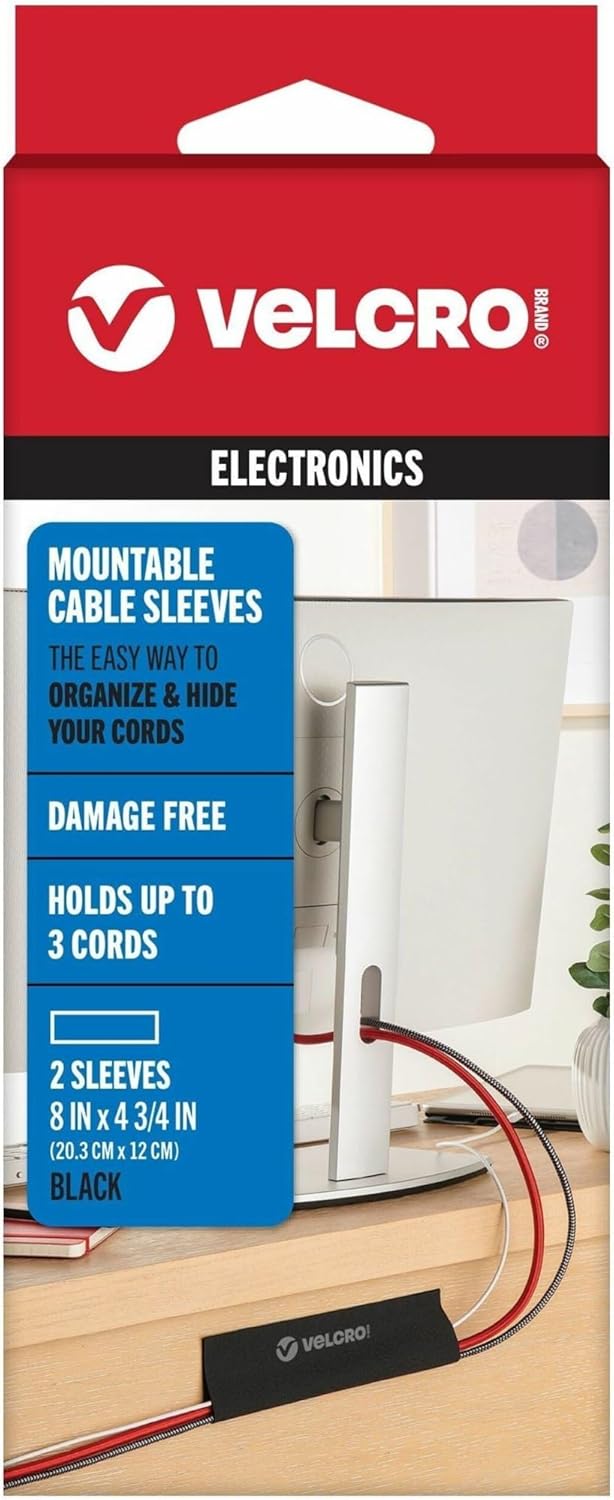 Manage your cables with the VELCRO Brand Mountable Cable Sleeves. The nylon material offers lasting use, and sleeves help keep your cables and wires neat and tidy. Durable nylon construction. Helps organize cables and wires. Designed for indoor use only.