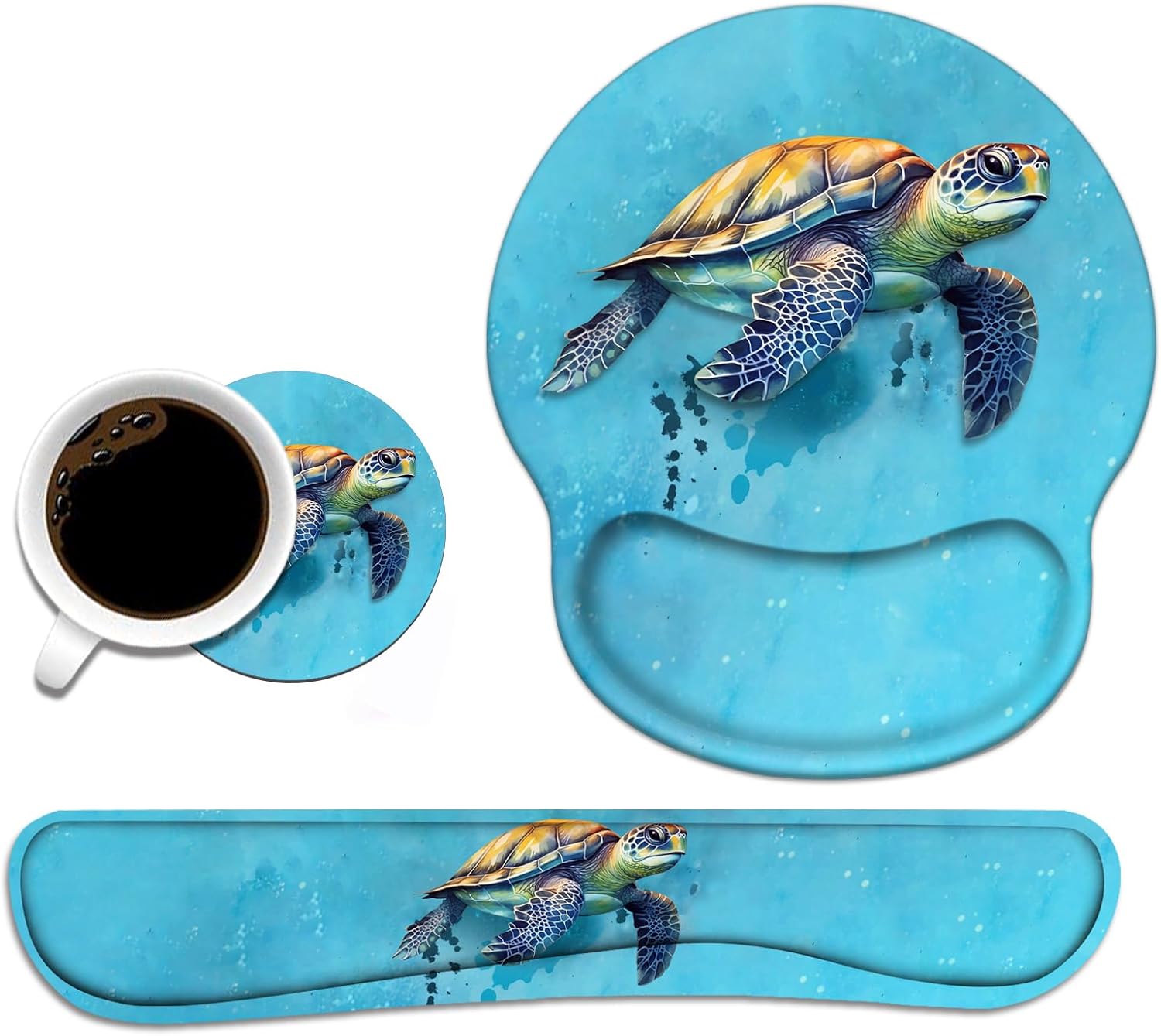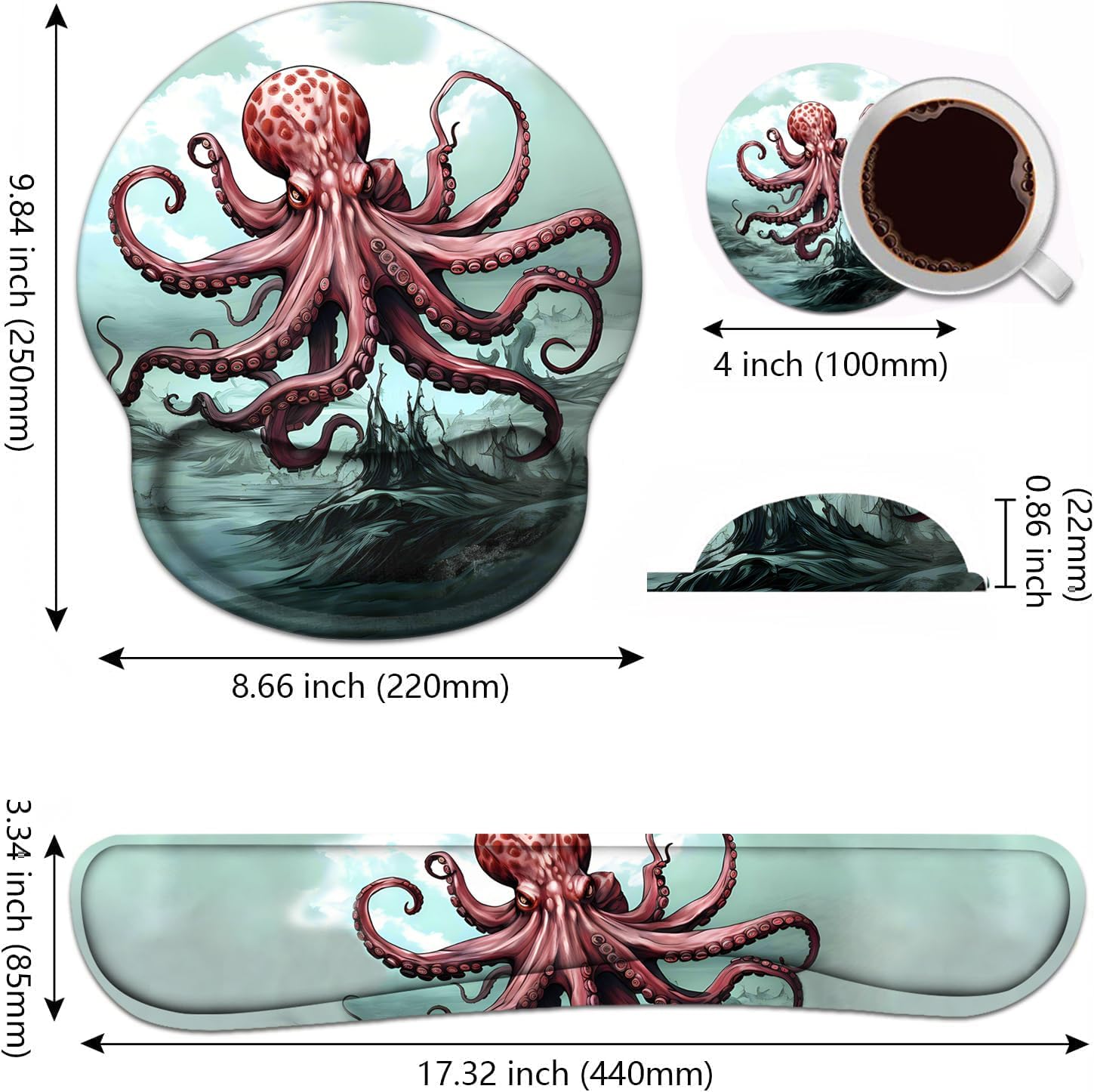 Ergonomic mouse pad with wrist support + keyboard wrist rests + cup coaster set for Home/Office/Work/Study✔ Are you looking for wrist rest mouse pad set with vivid images in bright color?✔ Do you want to get a PC accessory to prevent carpal tunnel issues?If Yes, we just solve your problems NOW, BWOOLL gaming mouse pad with wrist support set is the right choice for you.Features:- Wrist pad arc design fits the human wrist joints to keep the wrist in a natural and comfortable state.- Keyboard wrist & Mouse Wrist is made of cushioned neoprene, Non-toxic, no odor, harmless to health.- Non-slip rubber base provides heavy grip preventing sliding or unwanted movement.Suitable for different surface conditions.- High-definition printing, bright colors, easy to clean, not easy to fade.- Keyboard wrist rest pad & wrist support mouse pad set is a perfect office gift for colleagues, friends, teachers, boss, etc.Product Specification:Keyboard Wrist Rest Pad: 17.32" x 3.34" x 0.98" Mouse Pad Wrist Support: 9.84" x 8.66" x 0.86"Coffee Coaster: 4" x 4" x 0.08"Material: Surface Lycra fabric + Gel + Memory foam + Bottom rubberPackage List:1 x Mouse Pad with Wrist Support1 x Wrist Pad for Keyboard1 x Cute Coffee CoasterIf you’ve any questions or concerns about the product, please contact us, we are always here to help.Now, click "ADD TO CART" to get a worthy wrist rest pad set for mouse and keyboard.