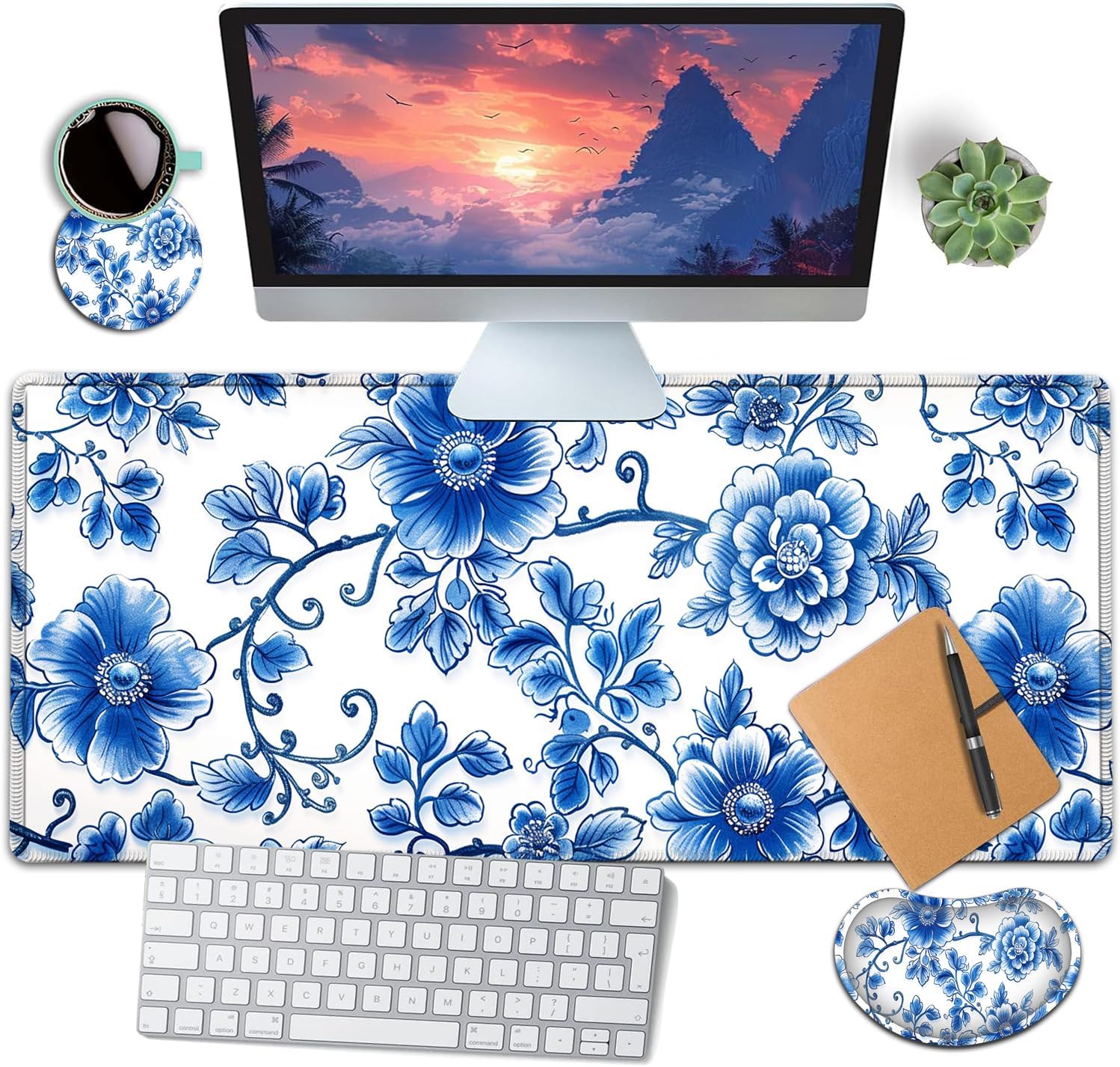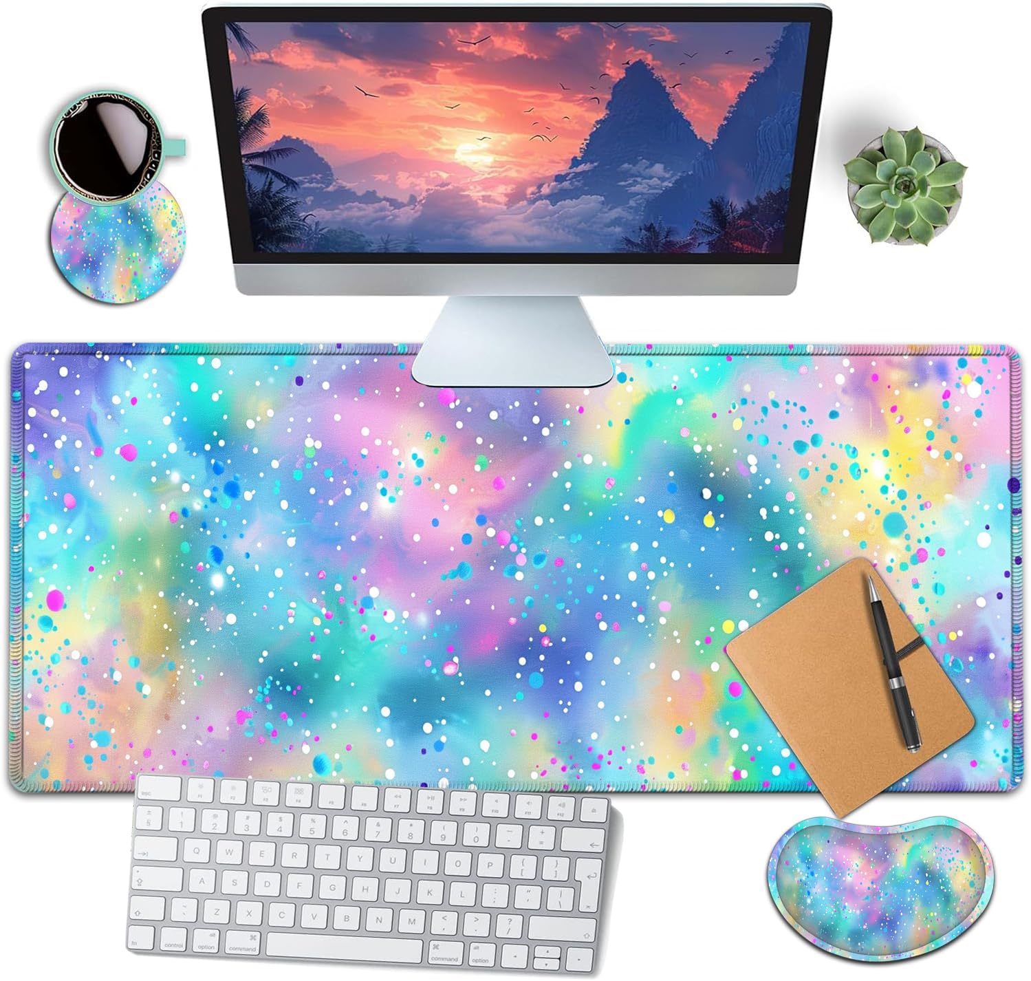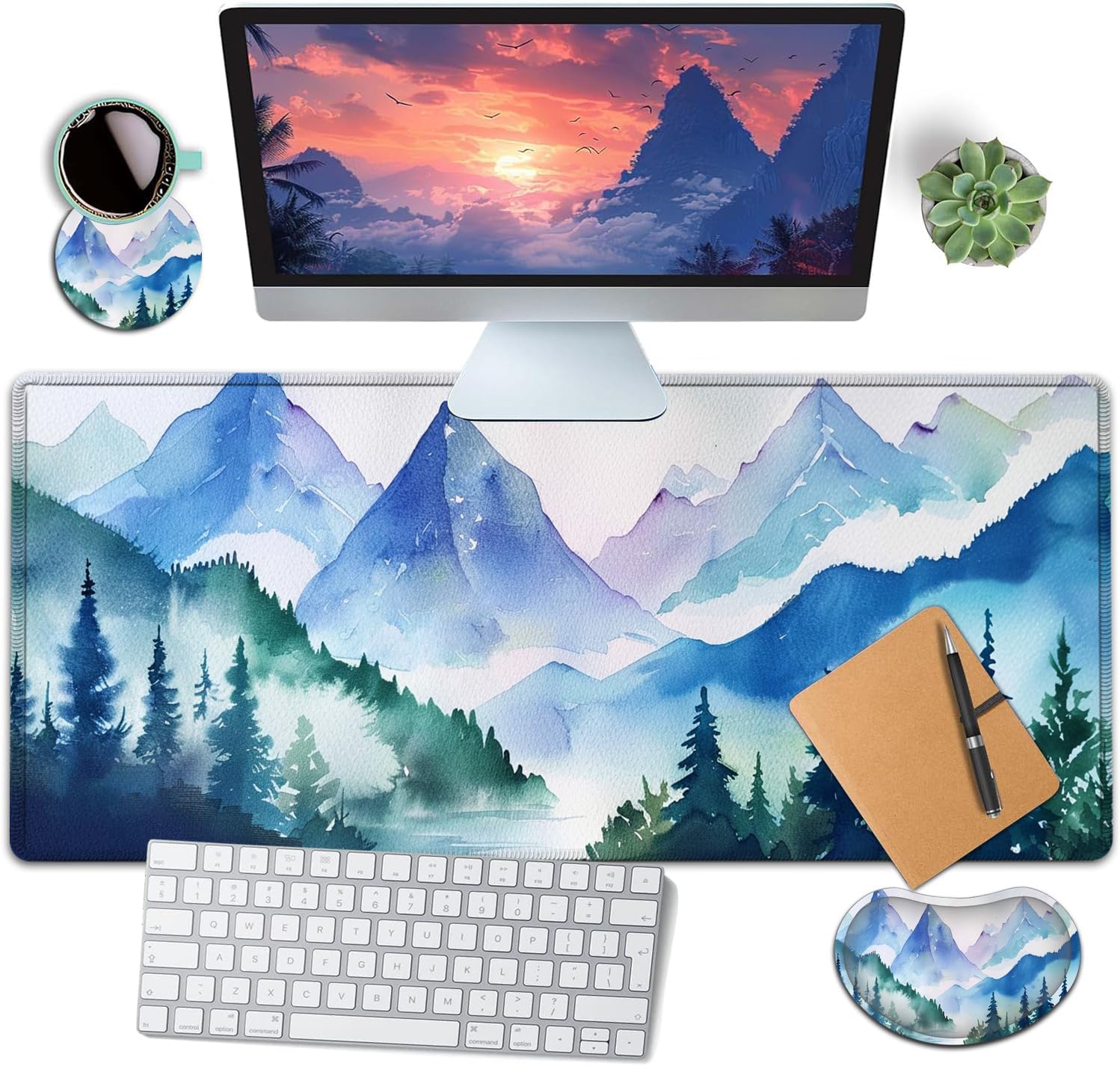 【Large Size】The size of large mouse pad for desk is 31.5×11.8inch,which is big enough to fit your full-sized keyboard, mouse, laptop,or other item on the desk,providing more space for professional gaming or office work. Besides,you can also use this extended mouse pad as a desk pad,writing pad,platform protection mat. Keep your desk clean and uncluttered. 【Ultra Smooth Surface】Gaming mouse pad is easy to be cleaned by wet rag or washed,no deformation and much durable than other ones. Covered by the superfine fabric, the mouse pad has a soft and smooth surface, helps you track the mouse fast and accurately, maximally enhances your gaming/working experience. 【Ergonomic Design】Mouse wrist rest is filled with thick memory foam, slow rebound soft and comfortable, with ergonomic groove design, it can provide comfortable and firm support for your wrist and avoid friction between your wrist and hard desktop. It fits your wrist perfectly and helps to effectively relieve wrist pain and fatigue caused by long-term repetitive motions.