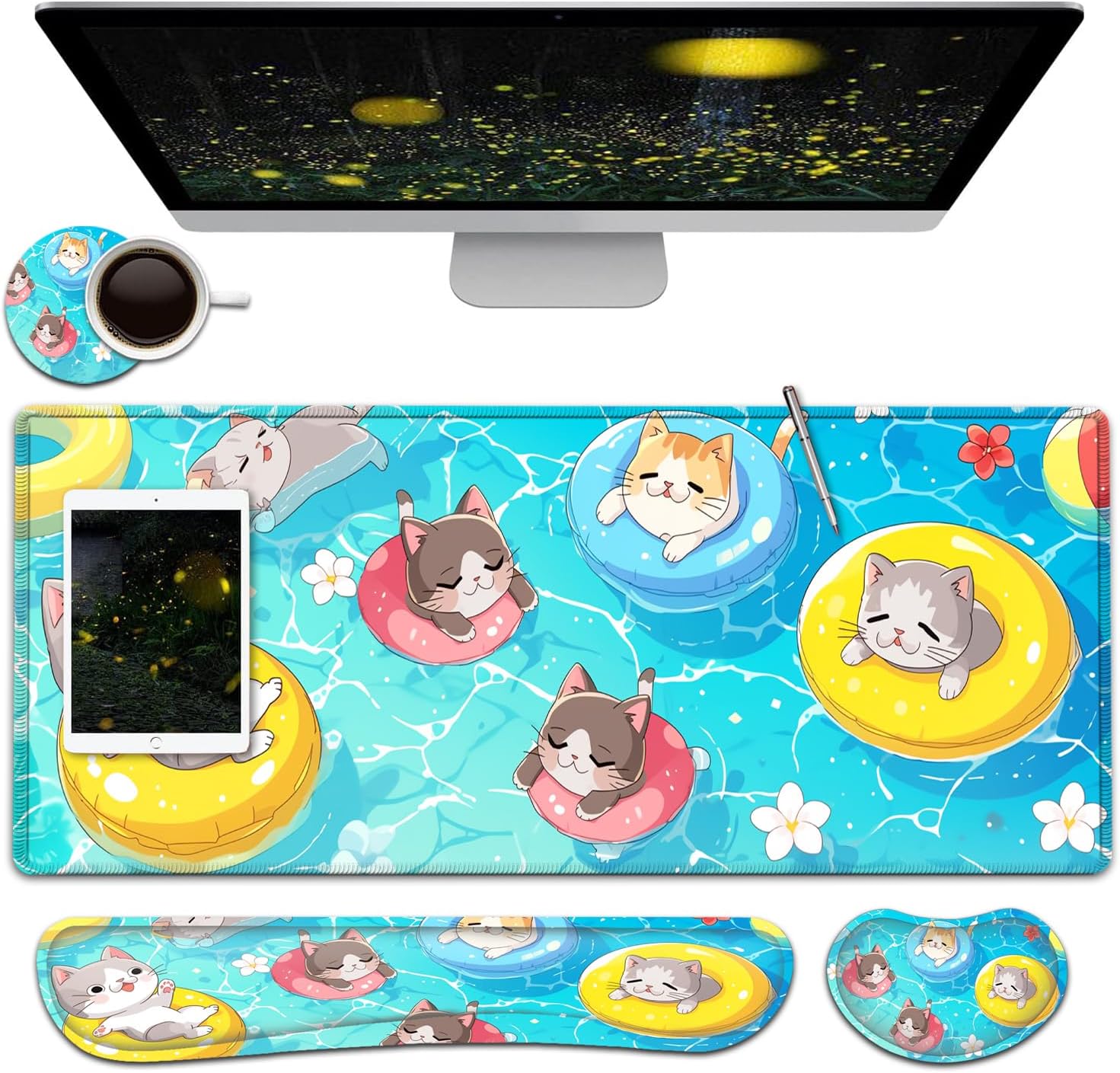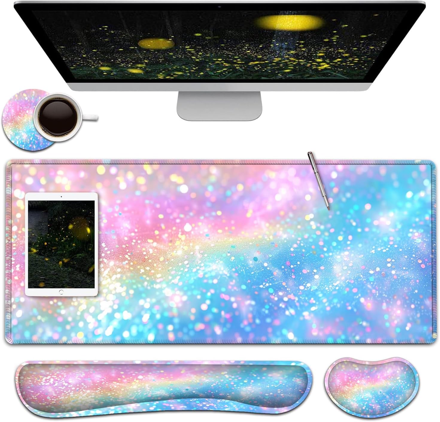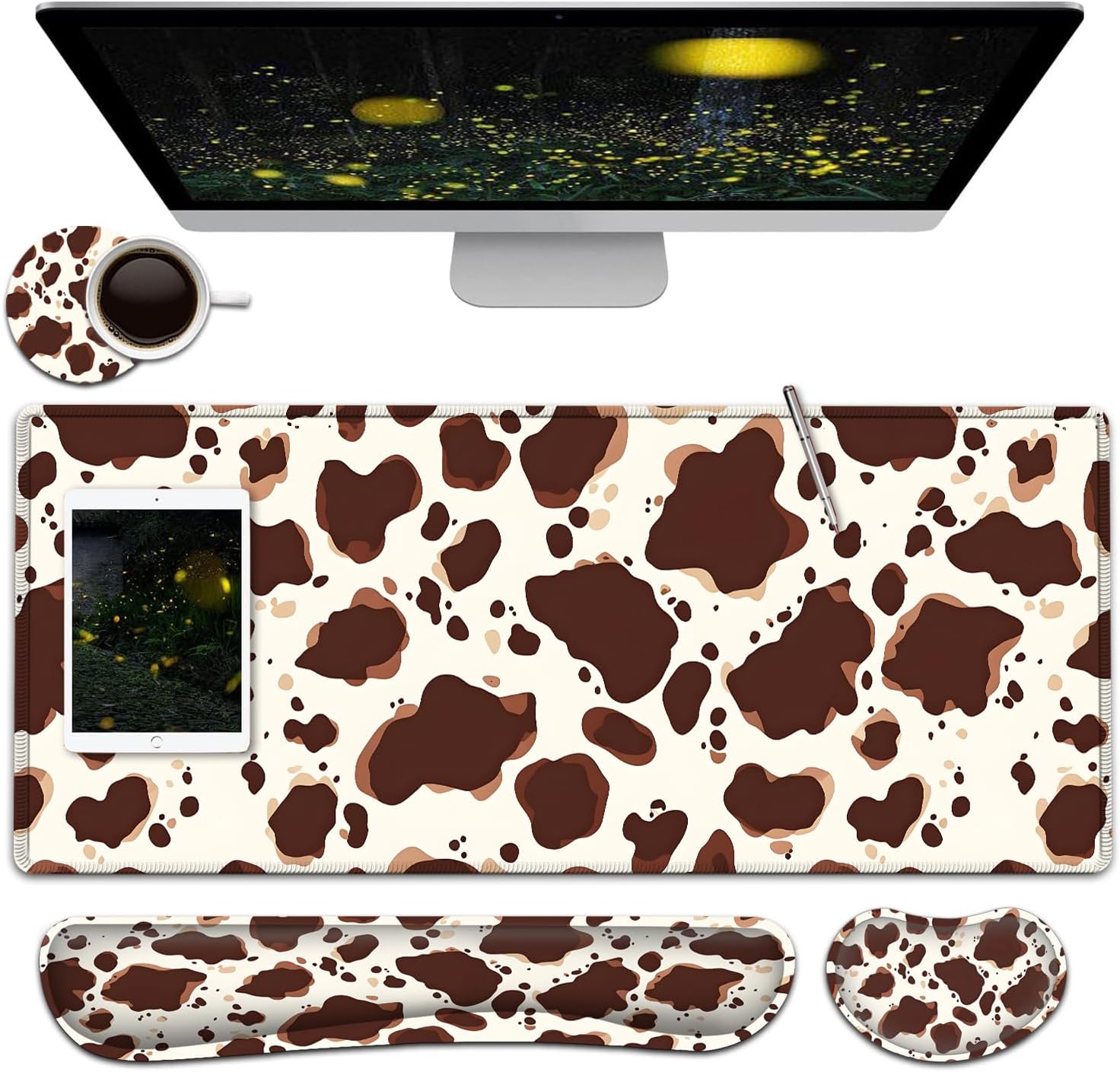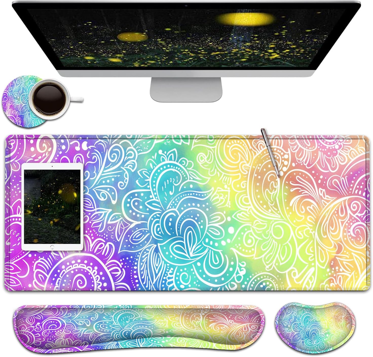 【Large and Extended Size】The size of this XXL large mouse pad is 31.5×11.8 inch,which is big enough to fit your full-sized keyboard, mouse, laptop,or other item on the desk,providing more space for professional gaming or office work. Besides,you can also use this extended mouse pad as a desk pad,writing pad,platform protection mat. 【Ergonomic Wrist Rest Design:】Using soft and breathable fabric and comfortable memory foam design, rest the wrist, raise the wrist to a suitable position, and reduce the pain of the wrist. The ergonomic height eliminates the friction between the wrist and the desktop, preventing unnecessary wrist fatigue and injury.【Ultra Smooth Surface & Stitched Edges】This extended mouse pad is easy to be cleaned by wet rag or washed, Covered by the superfine fabric, the mouse pad has a soft and smooth surface, helps you track the mouse fast and accurately, maximally enhances your gaming/working experience.Double stitched edges protect the mouse mat from wear. Urable enough for long time using. No deformation Much more durable than other mouse pads.【Non-slip Rubber Base】The Soft and dense non-slip natural rubber base can hold the table firmly. High-quality soft materials bring you comfort and mouse control, Just immerse into your work or games without worrying about the annoying mouse pad movement.【After-sales Guarantee】 All our products have undergone rigorous quality testing. If the product you received is damaged, please feel free to contact us and provide you with a satisfactory solution. So, what are you waiting for? Add to your shopping cart now!