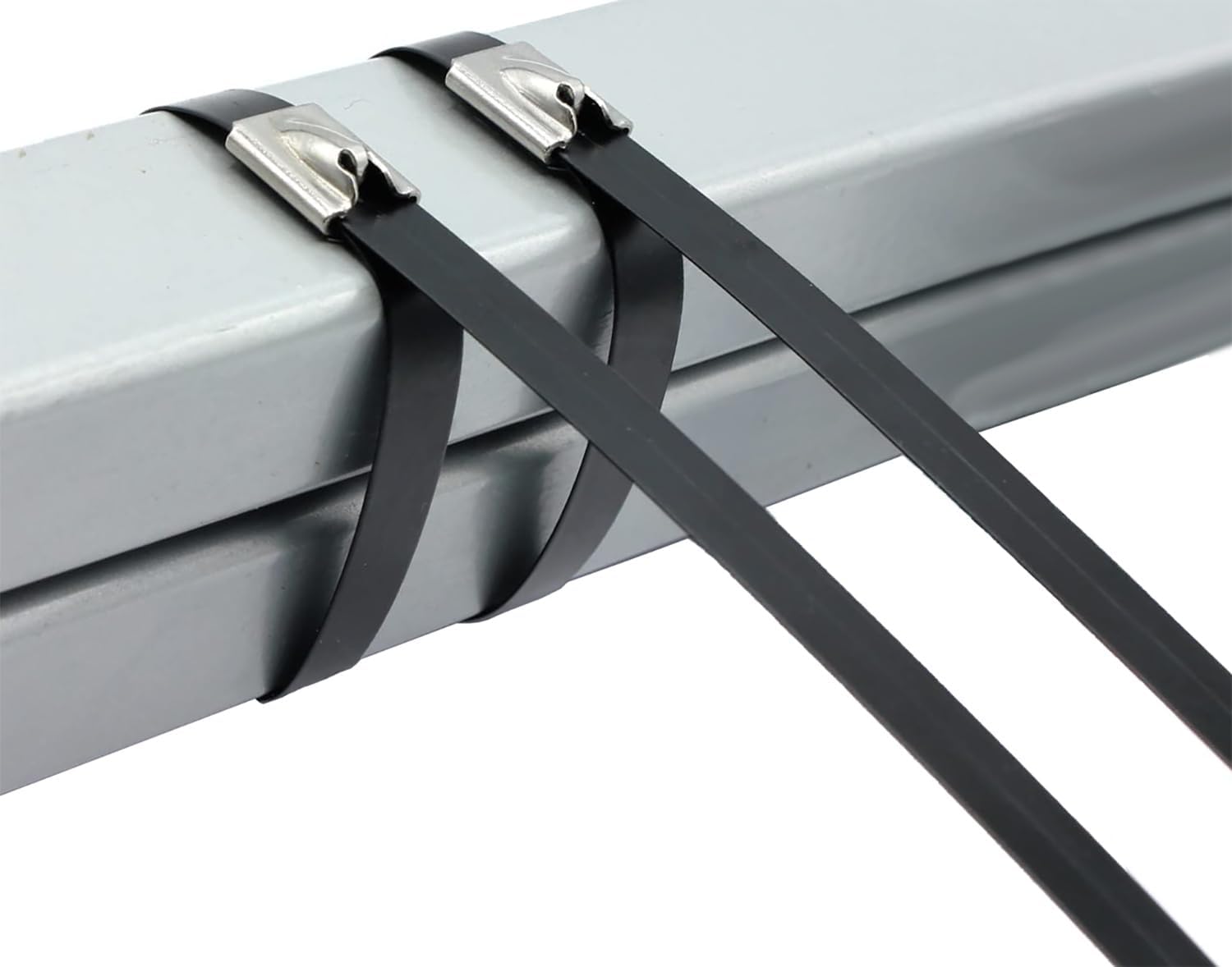 Electriduct 316 Stainless Steel Cable Zip Ties 20" Long, 225 LBS Tensile Strength, Heavy Duty Black Metal Self Locking Ball Lock Ties UV Resistant (25 Pack)