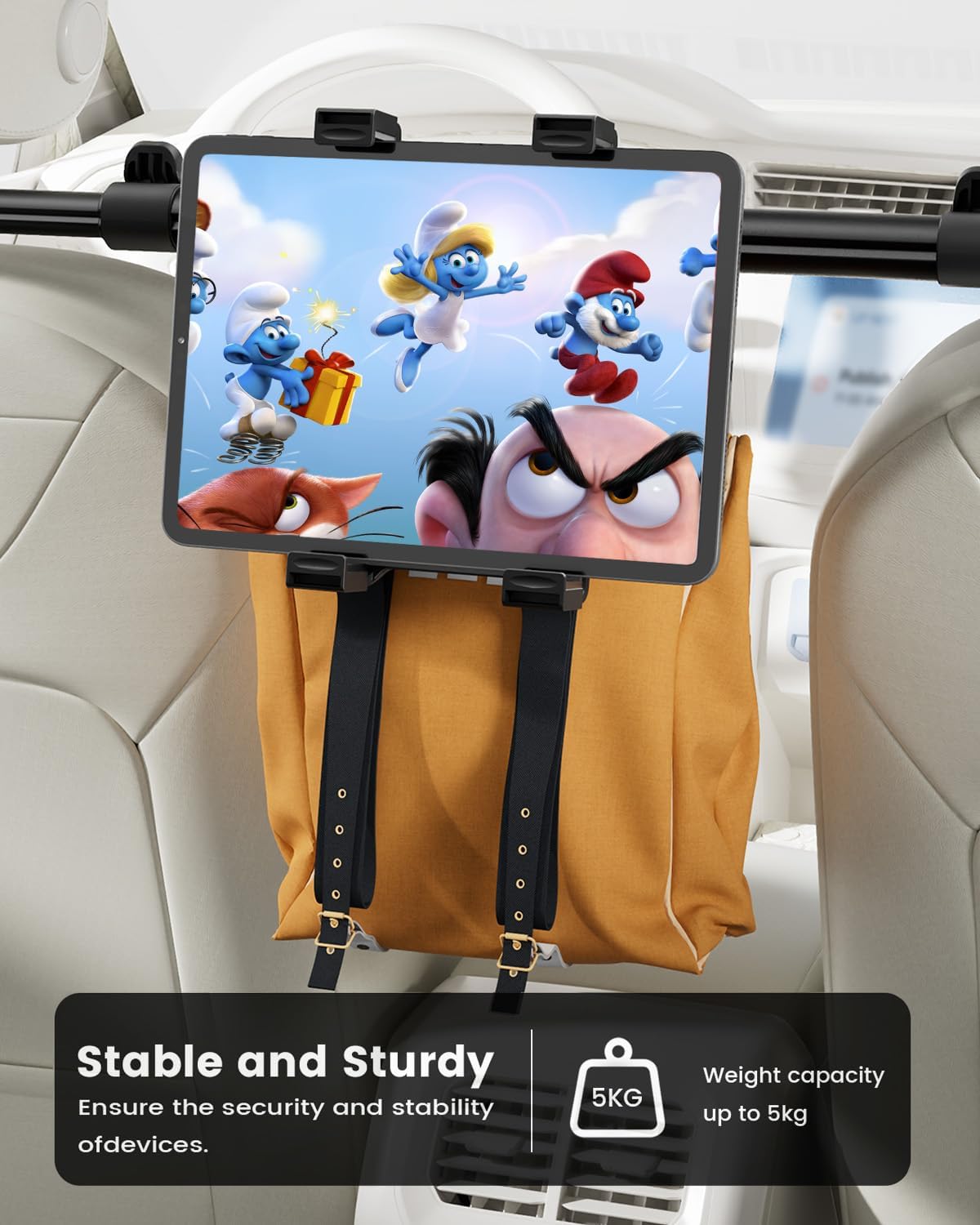 | Compatible Devices | Car Headrest Tablet Holder for Apple: iPad Pro 11, iPad Air, iPad Mini (7"-11"), Car Headrest Tablet Mount for Other: Lenovo Tab, Huawei MediaPad, ASUS ZenPad (7"-11"), Head rest Tablet Holder for Samsung: Galaxy Tab A, Tab S, Tab E (7"-11"), Headrest Car Tablet Holder for Amazon: Fire HD 8, Fire HD 10, Not Compatible with Phones |