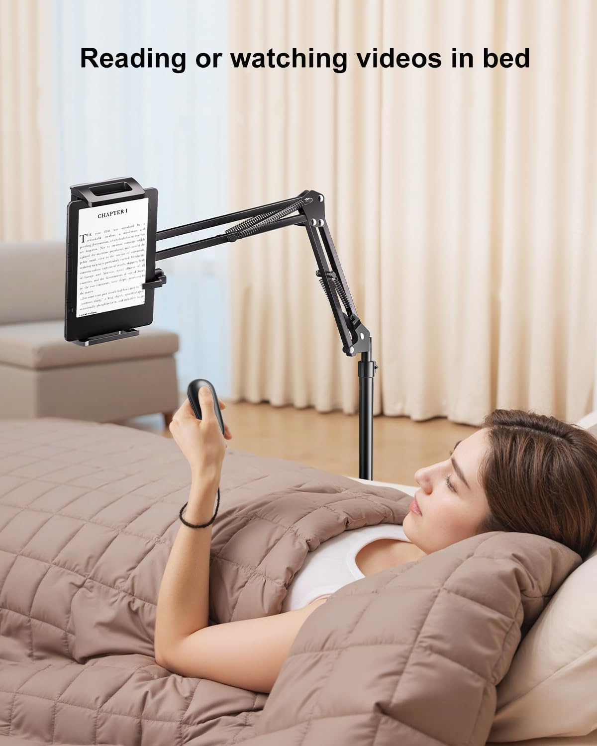 Floor Stand for Kindle, Overhead Bed Tablet Stand Angle Height Adjustable Holder, Universal Floor Stand Compatible with Kindle Paperwhite, Oasis, iPad, iPhone and More