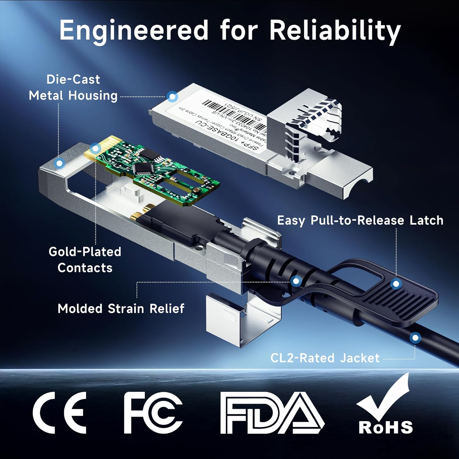 | Recommended Uses For Product | High-speed networking, data-intensive applications, connecting switches, servers, NICs, or transceivers in NAS, SAN, and HPC environments |