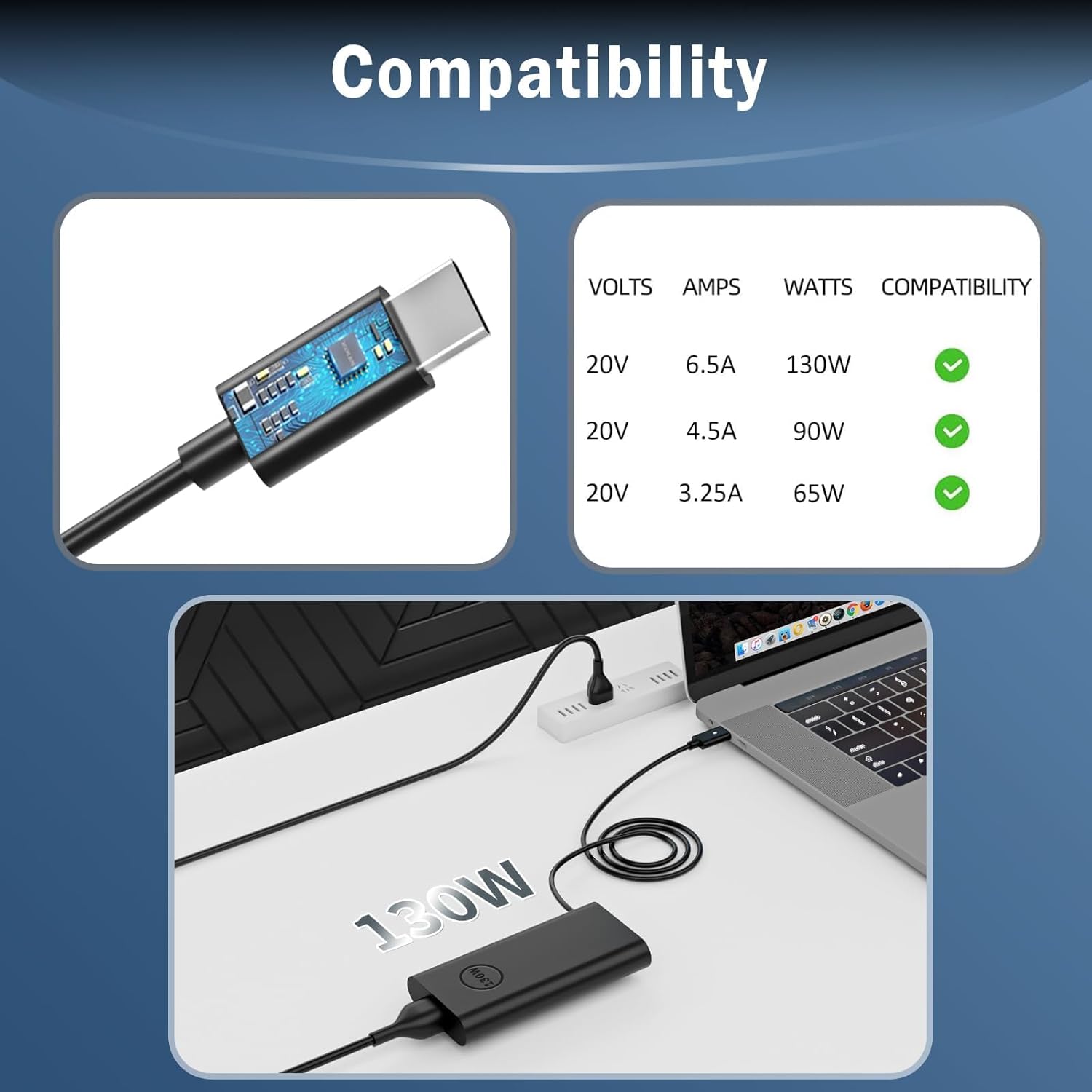 | Compatible Phone Models | 130W Dell Laptop Charger USB C Type C AC Adapter compatible with Dell XPS 15 17 9575 2-in-1 9500 Precision 5530 5550 3560 3550 3551 Latitude 7410 7310 9410 9510 9575 5420 5520 5510 Laptop Charger Power Cord |