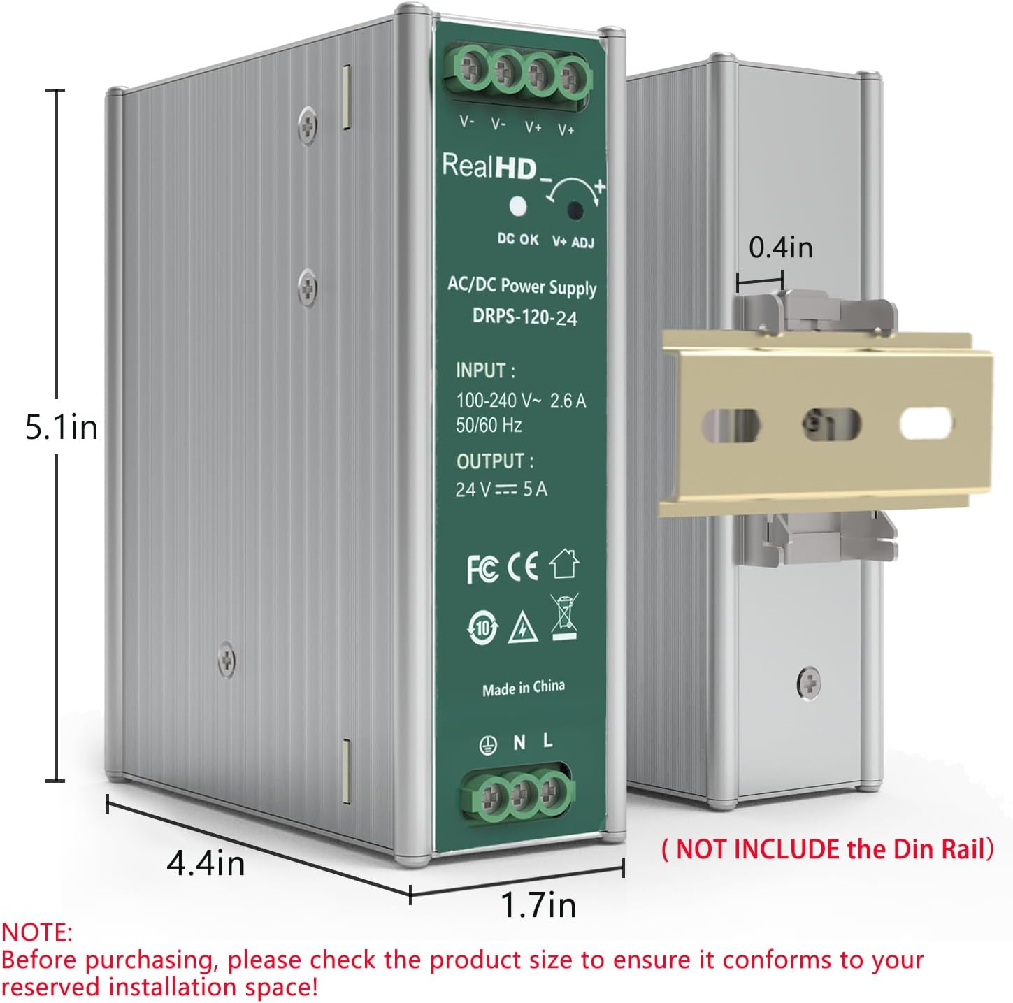 Specification24V/120W Input voltage: 100-240V 50/60Hz Input current: 2.6A Max Output voltage: 24V Output Current: 5A Output power: 120W Efficiency≥85%