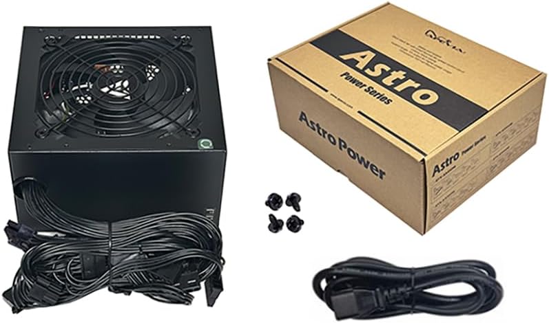 Apevia ASTRO450W Astro Series 450W Power Supply. 1 x 20/24pin Main Power/1 x 12V(P4)/3 x SATA/3 x Molex connectors. Auto-Thermally Controlled 120mm Black Fan. 115/230V Switch. 5% Tolerance of 5V, 3.3V & 12V Output. Max. Output Current +3.3V(16A), +5V(16A), +12V(36A), -12V(0.3A), +5Vsb(2.5A). Short-Circuit/Over-Current/Over-Voltage/Over-Power/Under-Voltage/Over-Temperature Protections. For safety, do not overload, abuse or modify the power supply unit. Use of this unit for Bitcoin Mining is not suggested since it will shorten the life and cause failures of power supply. Use for mining purposes is not covered by warranty. NOTE: Ensure that the power cable is connected to the wall outlet + power supply and also the 24/20 pin connector is connected to the motherboard (the power supply will not turn on if only the power cable is connected to the wall outlet and power supply).