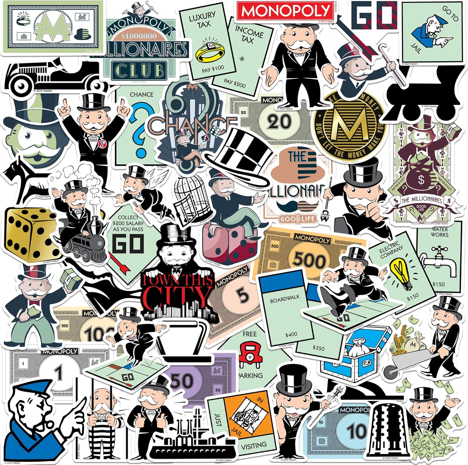 Celebrate one of the most recognizable board games of all time with the Monopoly vinyl sticker variety pack. This collection showcases classic characters, money-themed artwork, board spaces, and iconic symbols that capture the timeless style and playful spirit of the game. Each sticker is made from high-quality vinyl for long-lasting durability and bold visual impact. Designed for easy application and clean removal, these decals are ideal for customizing laptops, water bottles, planners, scrapbookss, and other smooth surfaces. Whether decorating personal items, creating themed gifts, or expanding a board game–inspired sticker collection, this set delivers classic fun with dependable quality for both indoor and outdoor use.
