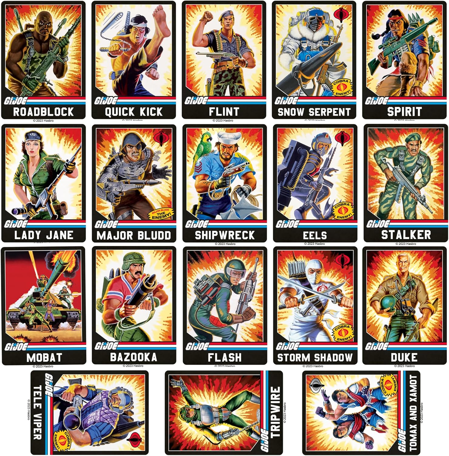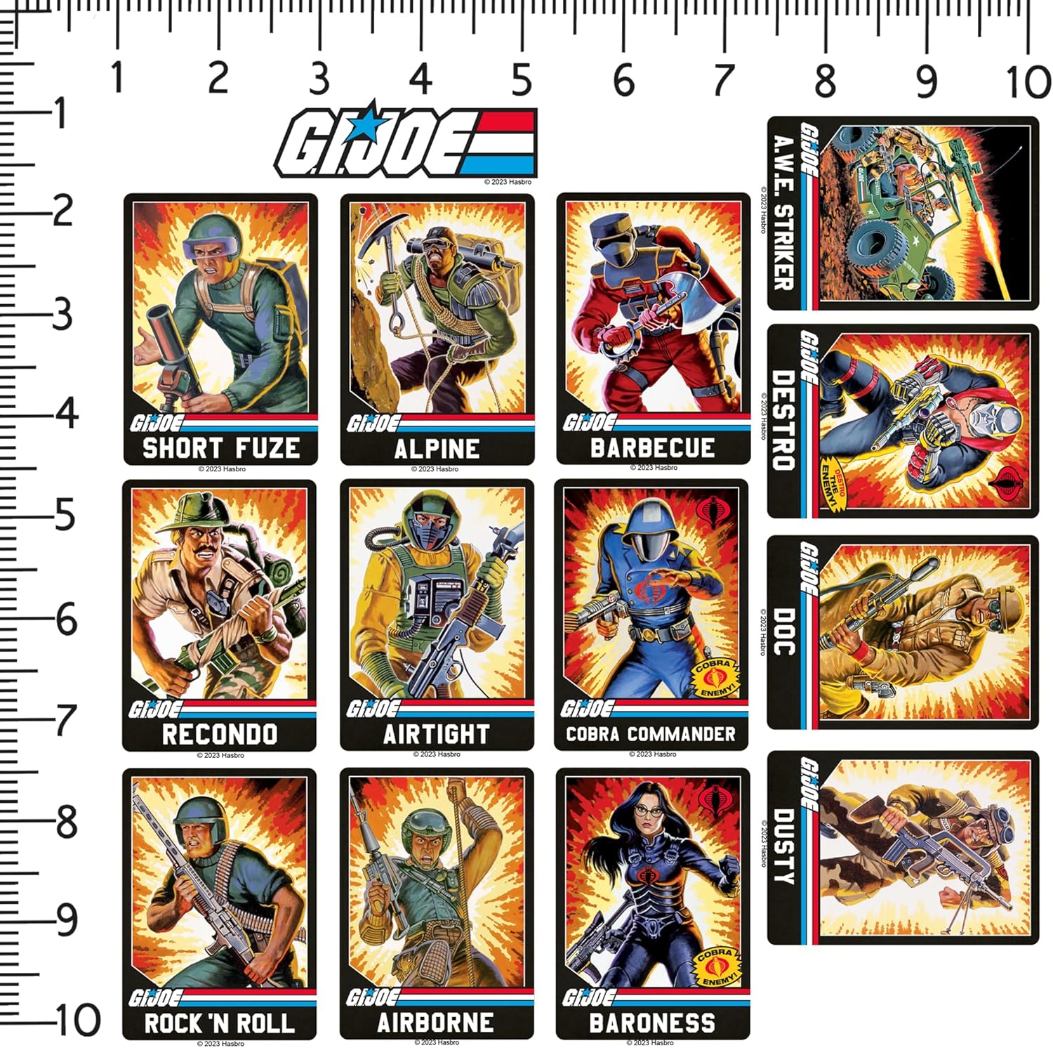 Celebrate classic action and retro adventure with this G.I. Joe Retro Vinyl Sticker Variety Pack. This deluxe collection showcases bold die-cut designs inspired by vintage G.I. Joe artwork, highlighting action scenes, vehicles, insignias, and iconic characters from the franchise’s early eras. Each sticker is crafted from premium adhesive vinyl, delivering sharp outlines, vivid colors, and reliable durability. Designed for smooth indoor and outdoor surfaces, these decals apply easily and hold firmly—making them ideal for customizing laptops, water bottles, tablets, journals, scrapbookss, and travel gear. With a dynamic mix of officially licensed retro designs, this sticker pack offers a powerful way to showcase nostalgia, action, and classic military-style artwork.