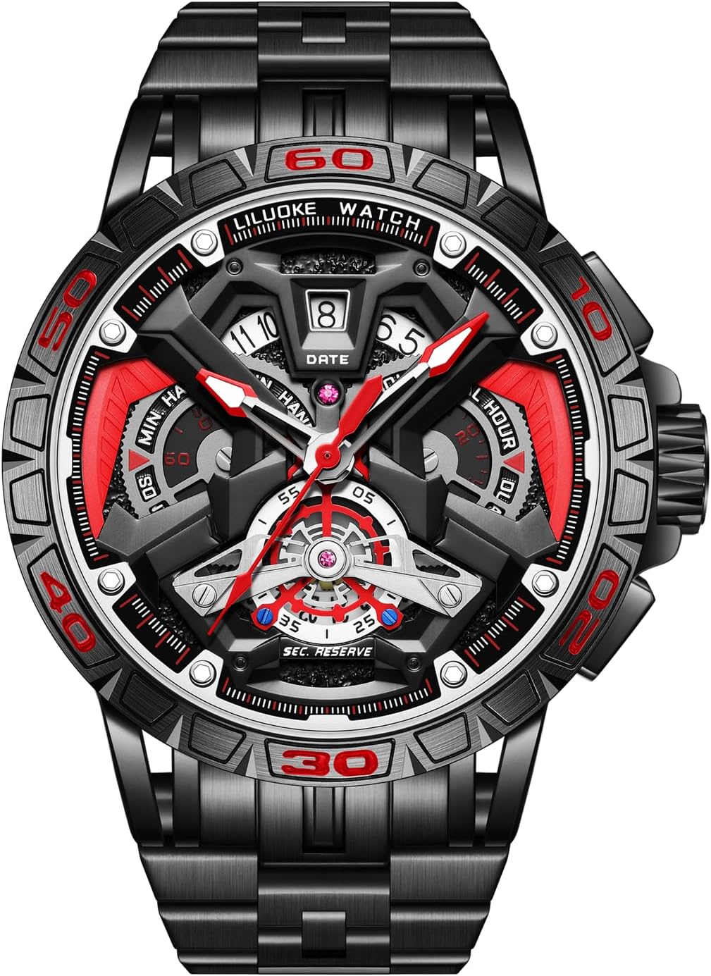 LILUOKE Mens Watches, Wrist Watches Luminous Design, Big Face Fashion Quartz Black Watch 30ATM, Casual Watch for Men Unique Gifts for Men