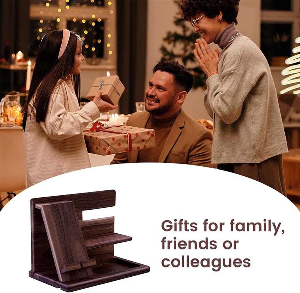 Wooden Phone Holder Docking Station Wallet Stand Watches Purse Glasses Key Storage Box Desk Display Organizer Bedside Nightstand Mens Gift for Home OfficeFeatures:100% brand new and high qualityMultifunctional charging station and organiser. Protect your phone and keep your daily things close at hand. This stand will be an eye-catcher and very practical accessory on your desk, bedside table.Made of high quality solid wood, strong and sturdy. The surface is polished smoothly and covered with a durable surface. Smart design. The stand is easy to assemble. Mobile phone stand compatible with all types of smartphones. Also has compartments for wallets, documents, glasses, watches, fitness trackers, bracelets, keys, stationery, etc.Great gift idea for your husband, dad, son, boyfriend, brother, boyfriend, colleague. Specification:Material: WoodenColor: BrownSize: app. 25.5x15x22cm(10.04x5.91x8.66in)Quantity: 1 pcNote:Transition: 1cm10mm0.39inchNo retail package.Please allow 1-3cm error due to manual measurement. pls make sure you do not mind before you bid.Due to the difference between different monitors, the picture may not reflect the actual color of the item. Thank you!Package includes:1 x Storage Shelf(other accessories demo in the picture is not included.)