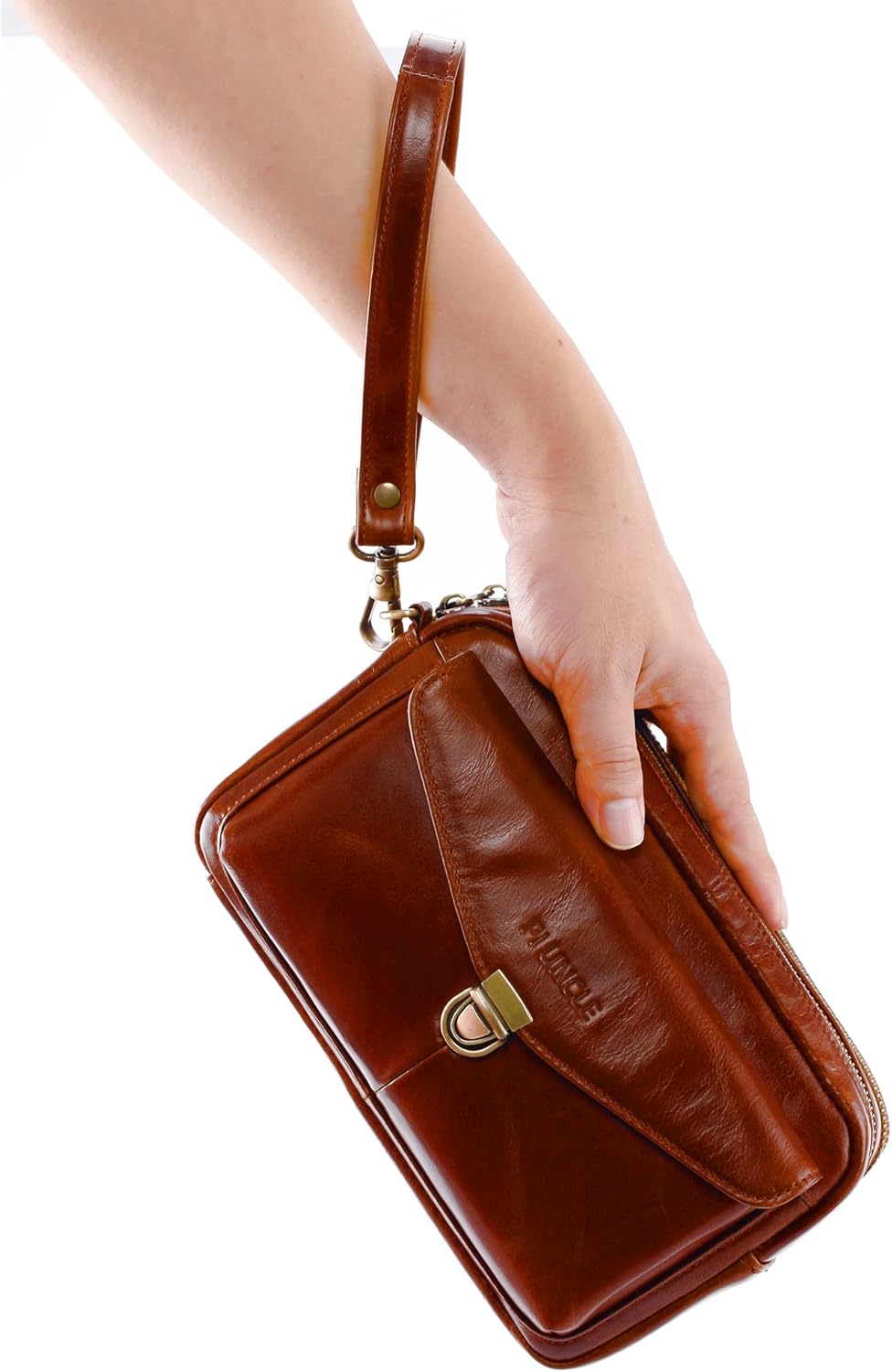 Mens Leather Clutch Organizer Wrist Bag Wallet