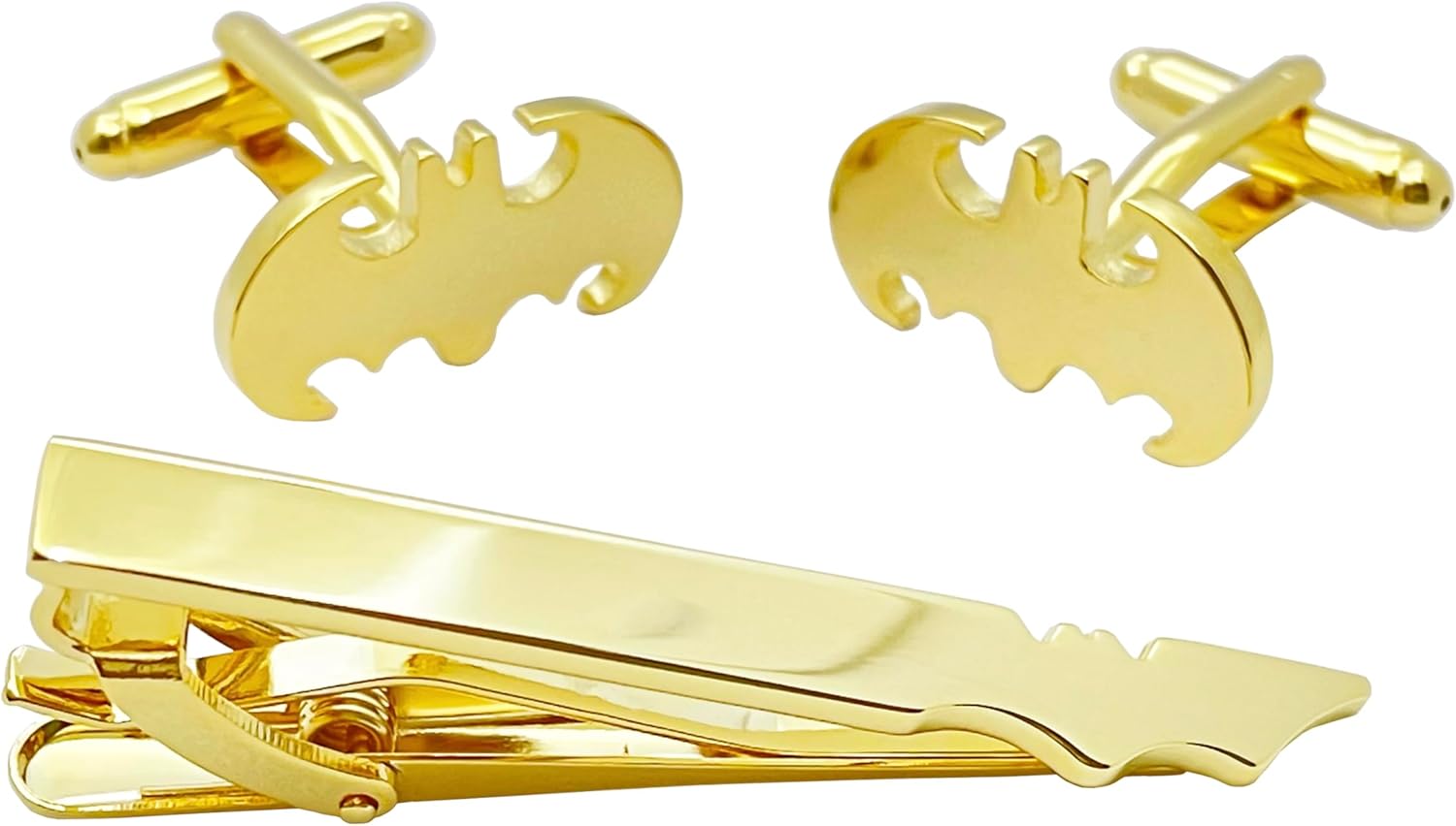 Specification: weight: about 20 g the cufflinks size : about 2.2 cm * 1.1 cm the tie clip's length : about 5 cm Material: BrassElevate your formal attire with these sleek and sophisticated Bat cufflinks and tie clip set. Crafted from high-quality metal with a lustrous golden finish, these accessories exude a touch of superhero flair. The iconic Bat emblem is intricately detailed, adding a subtle yet stylish nod to the beloved caped crusader. Whether you're attending a business meeting or a black-tie event, this set will make a bold statement while complementing your dapper look. these cufflinks and tie clip are the perfect accessories to complete your ensemble with a hint of geeky charm. Embrace your inner hero and let these Batman-inspired pieces be the highlight of your outfit.