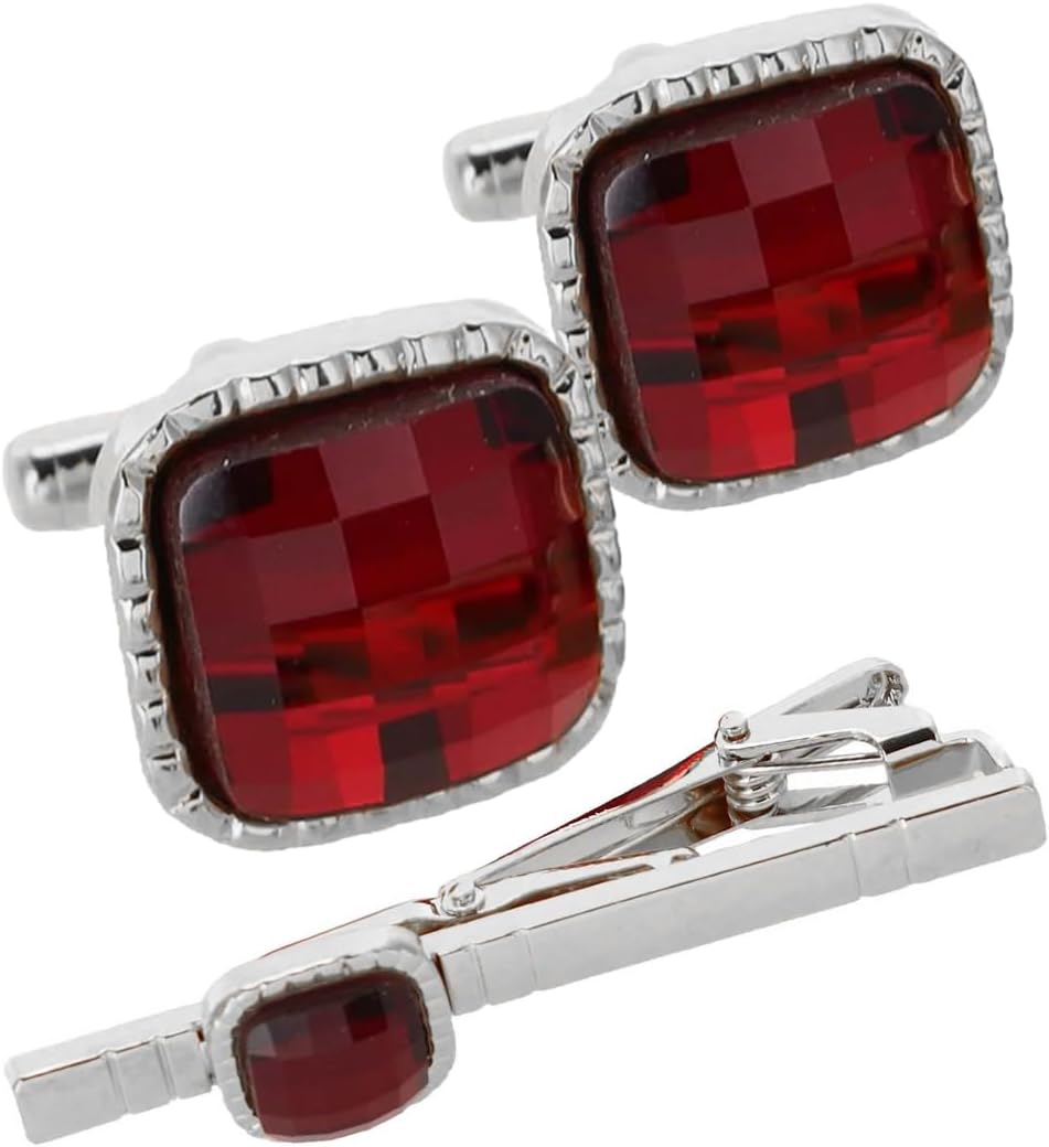 Vittorio Vico Men's Colored Crystal Cufflink & Tie Bar Set in Gift Box