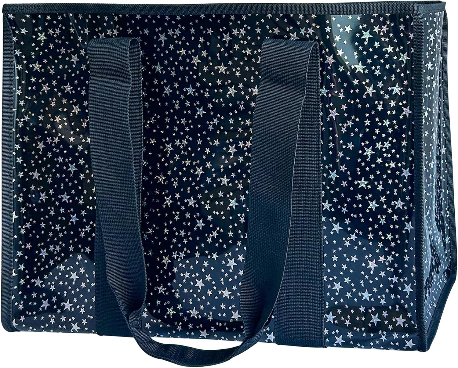 Make a splash with this eye-catching holographic beach bag that combines style and functionality. The spacious 17.32×8.27×12.2 inch transparent tote features a striking pink handle and a waterproof PVC construction that keeps your belongings protected from sand and water. The bag's star-studded holographic design creates a mesmerizing rainbow effect, while the detachable phone pocket ensures your device stays safe and accessible. Perfect for beach days, pool visits, or summer travels, this lightweight tote offers ample space for towels, sunscreen, and other essentials. The durable handles and high-quality materials make it a reliable companion for all your warm-weather adventures. The clear design makes it easy to locate items, while the waterproof material ensures everything stays dry. Whether you're heading to the beach or lounging by the pool, this versatile tote combines practicality with a dash of summer sparkle.