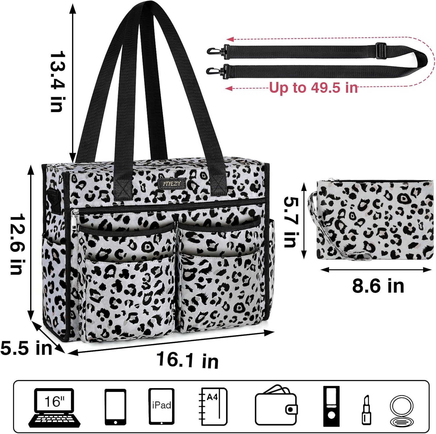 ITIEZY Utility Tote Bag for Women with 15/18 Pockets, 2 PCS Large Zipper Tote Bag, Everyday Tote Bag for Teacher Nurse Work, TravelCrafted with high quality waterproof nylon fabric and polyester lining, this waterproof tote bag is easy to clean and durable. The large tote bag comes with an adjustable & detachable shoulder strap, making it not only a tote bag, but also a shoulder bag, and a crossbody bag. The top zipper closure keeps your items safe.Large Capacity Teacher BagUtility Bag Size: 16.1* 5.5*12.6 inchesWith 18L large capacity design, our tote bag with pockets and compartments can easily can meet all your daily need. It also has a small zipper pouch that can hold your your important items such us phone and keys. Whether you are working on a daily basis or traveling for business, you can use this utility tote for easy organization.Multi-Pockets Convenient DesignThis tote bag for women with zipper features 8 exterior and 10 interior pockets, which can accommodate many scattered items. The front zipper compartment and the magnetic back pocket can hold your ipad or magazine to pass the time when bored.Tote Bag with Luggage StrapBack luggage strap allows you to easily slide the tote onto the handle of your suitcase trolley, making it more convenient and comfortable on the go.Versatile Tote Bag✔This everything tote bag is not only suitable for work commuter, but also for teachers, nurses and moms who need to carry a lot necessaries.✔You can take it as a teacher tote bag, nursing bags for nurses, commuter tote bag, everyday tote bag, work tote bag, college tote bag or travel tote bags for women.✔This utility tote bag with pockets is a perfect choice for women, teachers and mothers on Teachers' Day, Mother's Day, Christmas, birthdays or other celebration day.