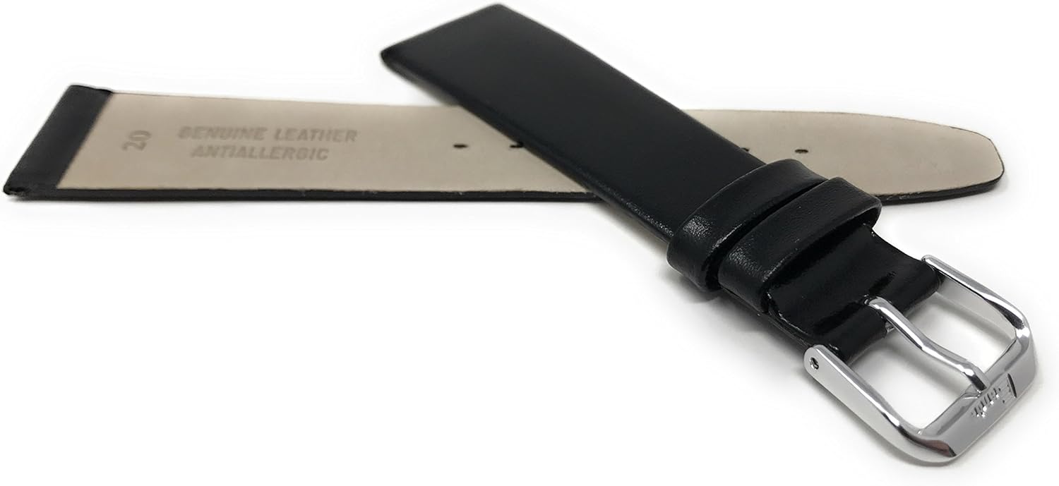 Select Proper Width: Compatible with any traditional watch or smart watch that uses 22mm spring bars. Measure watch lug where Band and spring bar meet the watch casing. (See Pictures for Instructions on How To Measure). It is important that your watch's lug Width is the exact Width of the Band you select or spring bars will not fit correctly. After determining proper Width select the corresponding Width from the size menu above. Details: Bandini Extra Long (XL) 22mm Mens Italian Leather Watch Band Strap - Black - Classic - Slim Dimensions: Band Width (Lug x Buckle End): 22mm x 18mm | Long Side: 4.53 inches (11.5cm) | Short Side (without Buckle): 3.54 inches (9cm) | Total Band Length (without Buckle): 8.07 inches (20.5cm) | Band Thickness: 0.08 inches (2mm) Installation: Easy to install, Watch Band fits watch models that attach to the watch Band with a standard spring bar pushpin. (2 Spring Bars Included) Included: 1 Watch Band and 2 spring bar pushpins