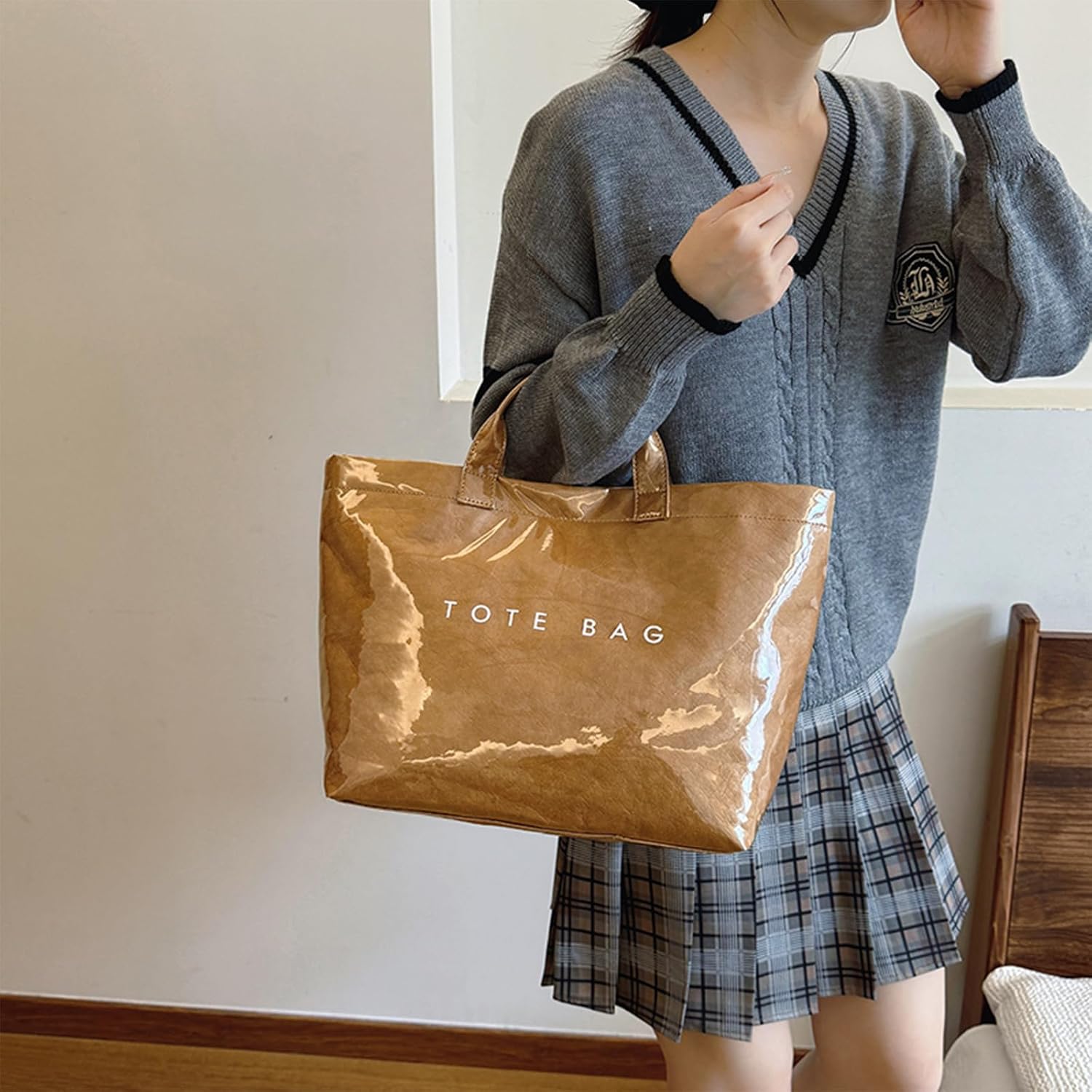 Specification:Material: Kraft Paper and PVCSize: 45*13*29 cm/17.7*5.12*11.42 in (L*W*H)Closure: VelcroHand strap: 9cm/3.54inOccasion: Shopping, Party, Work, Dating, Travel, Vacation, Etc.packing list:1 * Tote Bag