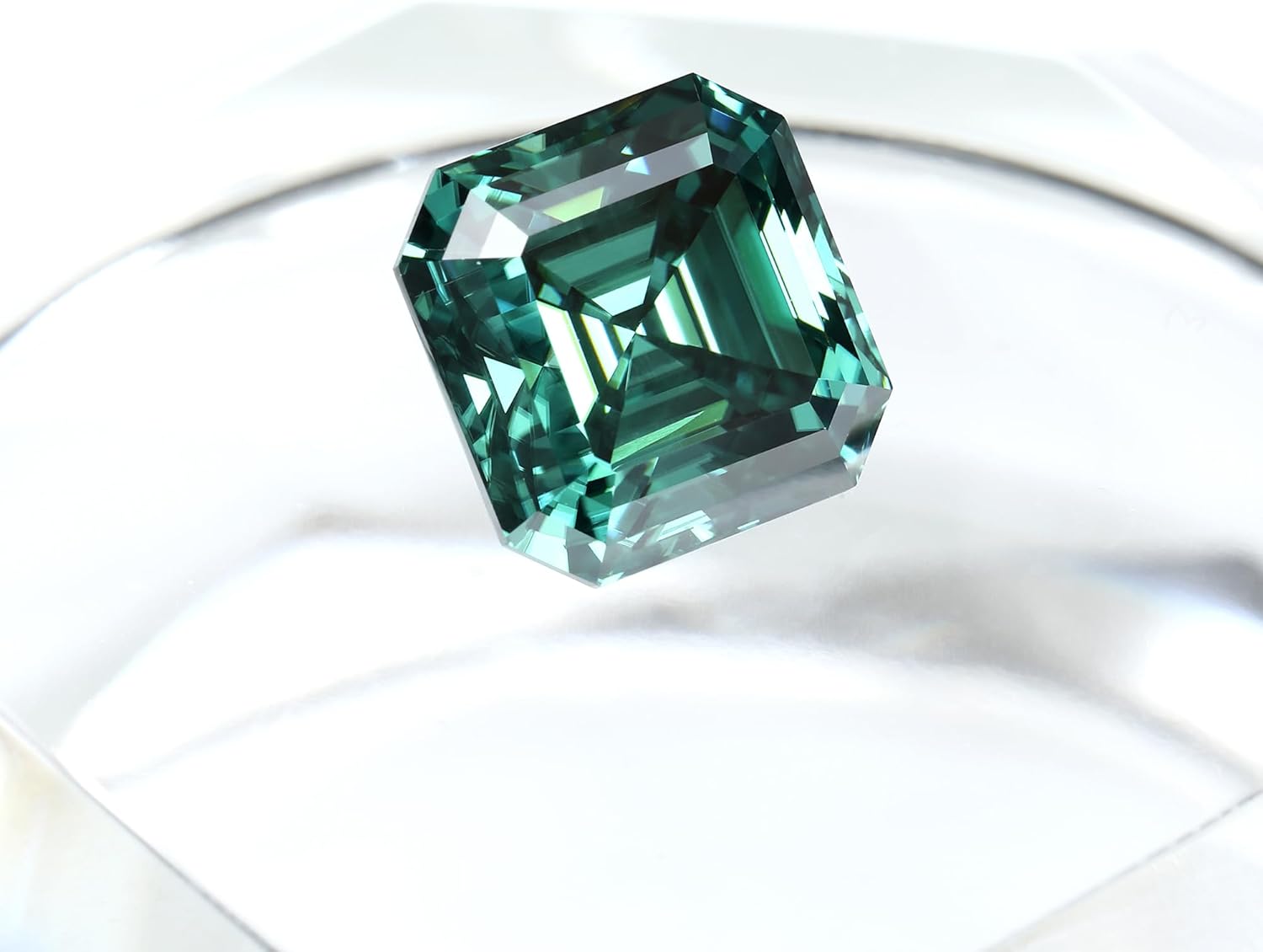 Green Moissanite Asscher Cut Loose Stone, Lab-Grown Gemstones VVS1 Clarity, For Jewelry Making, Earrings, Necklaces, Bracelets, Rings, Pendants With GRA Certificate