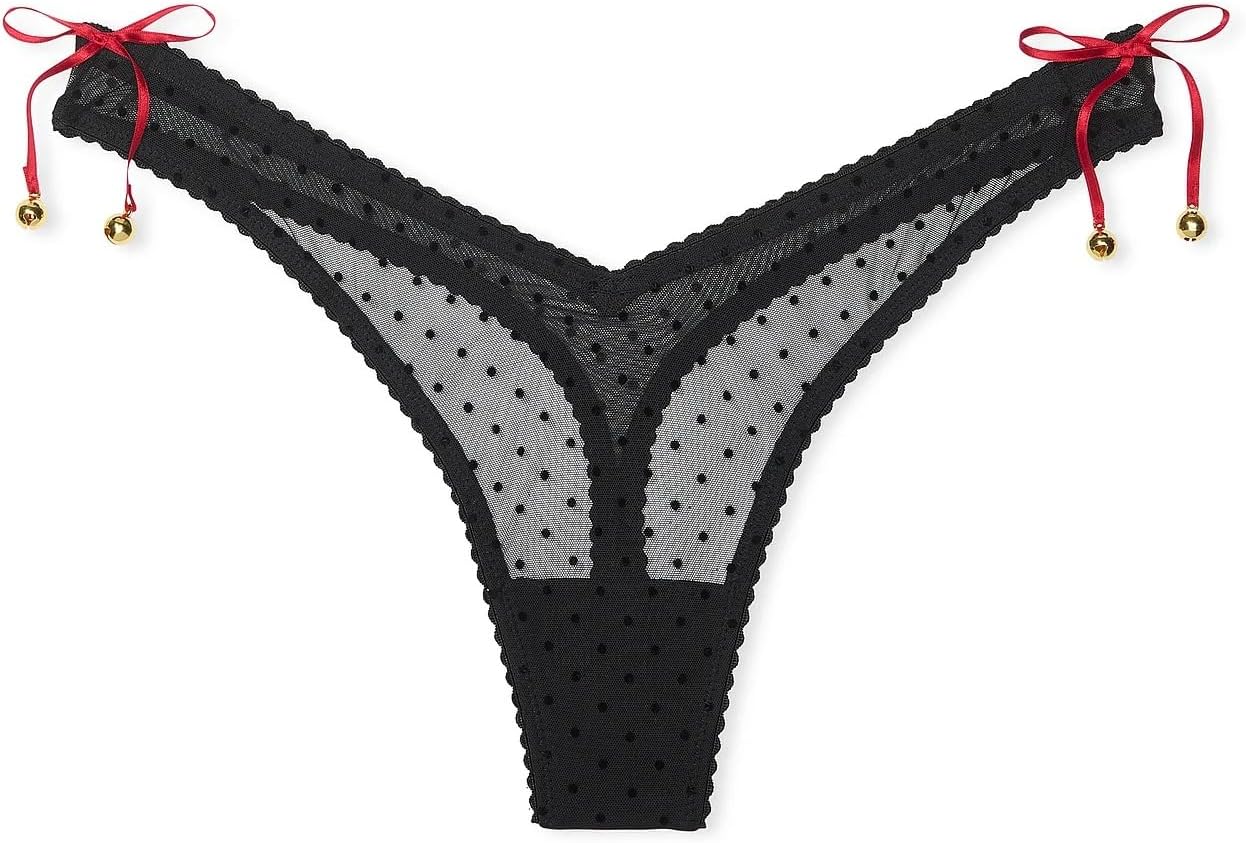 Victoria's Secret Jingle Bells Mesh Thong Panty Color Black New