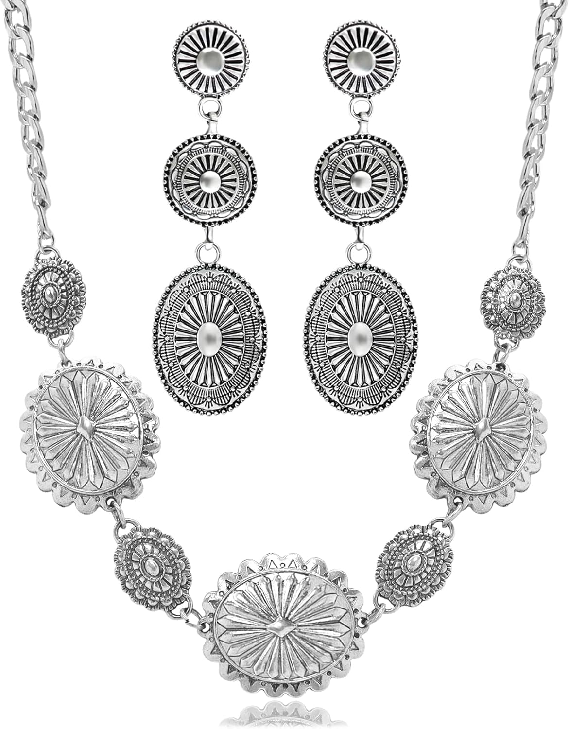 | Product Style | 4 Pcs Cowboy Hat Earrings Concho Necklace Jewelry Set C |