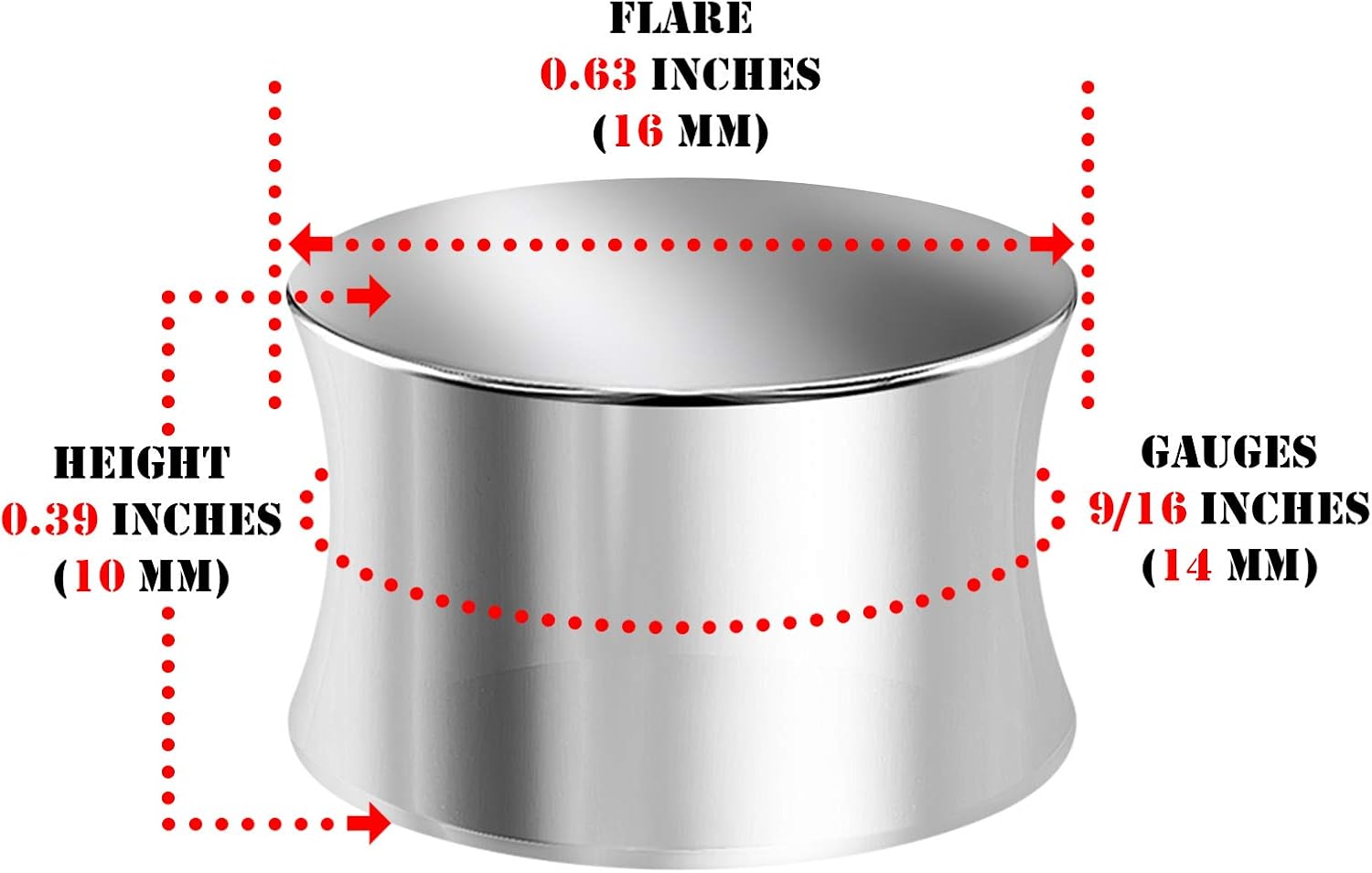QUALITY STAINLESS STEEL Surgical steel is used in our Double Flared Gauges; it’s implant grade and biologically compatible which means it won’t irritate. Surgical steel is corrosion resistant and easy to clean.NEW LOOK These Ear Guages Plugs offer a fresh new look allowing you to change your style when gauging out. UNISEX AND UNIQUE TO US Anyone can wear these Double Flared Ear Plugs, and they suit any occasion. They’re a great all-around choice. TAILORED We measure these Jewelry Ear Piercing before we post them so you can be assured that they are the right size for you.YOU RECEIVE 2 Pairs of 316L Surgical Steel Plugs Ear Gauges . 9 gauge choices ;8g 1/8"(3mm), 6g 5/32"(4mm), 4g 3/16"(5mm), 2g 1/4"(6mm), 0g 5/16"(8mm), 00g 3/8"(10mm), 1/2 inch Gauge (12mm), 9/16 inch Gauge (14mm) and 5/8 inch Gauge (16mm), please pick one.