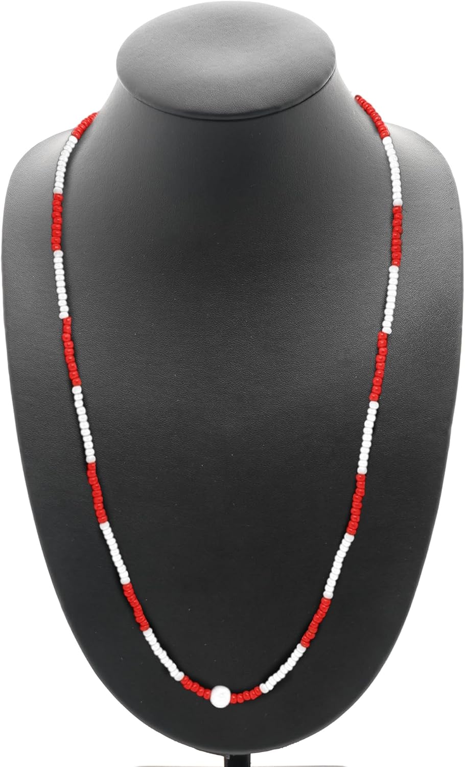 Show your team spirit with a brightly colored beaded necklace! High-quality glass Czech seed beads have been carefully hand strung onto nylon for a necklace that is beautiful and strong. Approximately 30" long, each necklace comes with a kraft box and ready to give as a gift. Please reach out with any questions