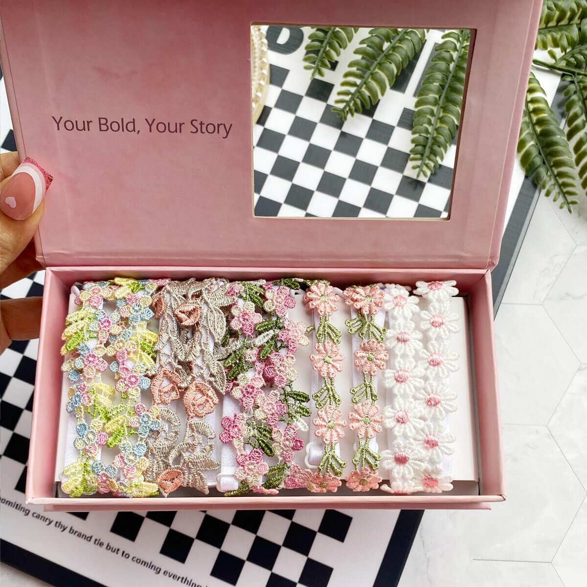 Bring a sweet floral touch to your everyday style with our 5 Pairs Spaghetti Flower Bra Straps – Pink Series! This adorable set includes five uniquely designed pairs featuring delicate plum blossom, rose, and daisy motifs—all in varying shades of pink. Whether you're dressing up a tank top, adding flair to a strapless dress, or replacing basic bra straps, these decorative and adjustable straps give you the freedom to personalize your look with ease. Crafted with comfort and fashion in mind, the spaghetti-style straps are thin, elegant, and lightweight—perfect for warm weather or layering. With removable hooks, they work with most convertible bras, giving you stylish support without sacrificing comfort. Each set is beautifully packaged in pink gift box, making it an ideal gift for fashion lovers or a cute upgrade to your own lingerie drawer. Embrace floral charm and versatile function with this must-have pink floral bra strap set!