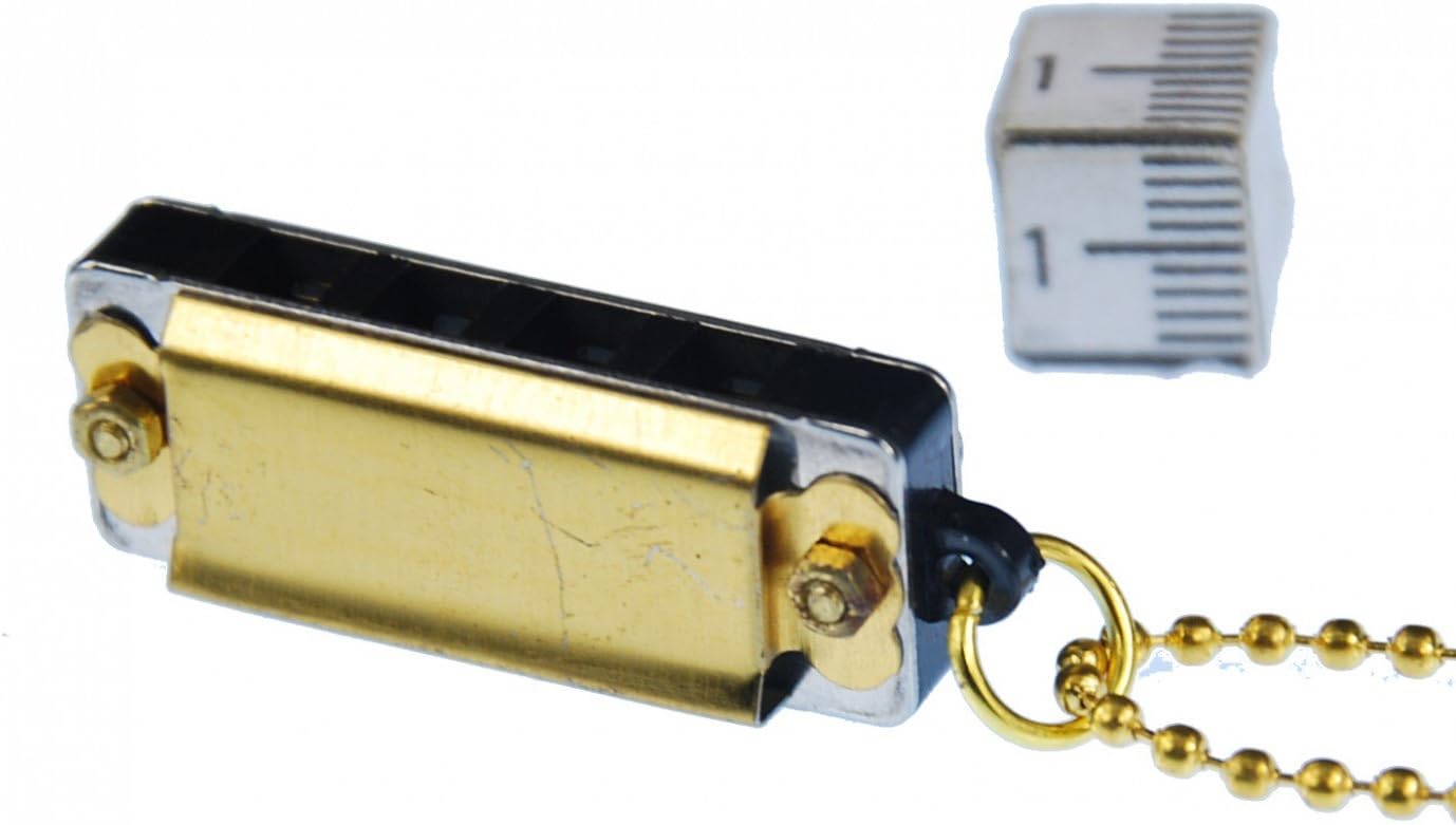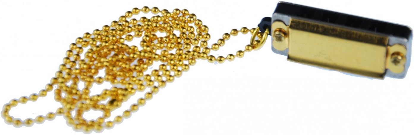 Adorabel golden coloured harmonica as necklace.has 8 tones and can be played properly as their 'big brother'Color: GoldMaterial Pendant: metalmaterial chain: metal, gold platedsize of pendant: 35mmchain length: 80cmContent: 1 necklace