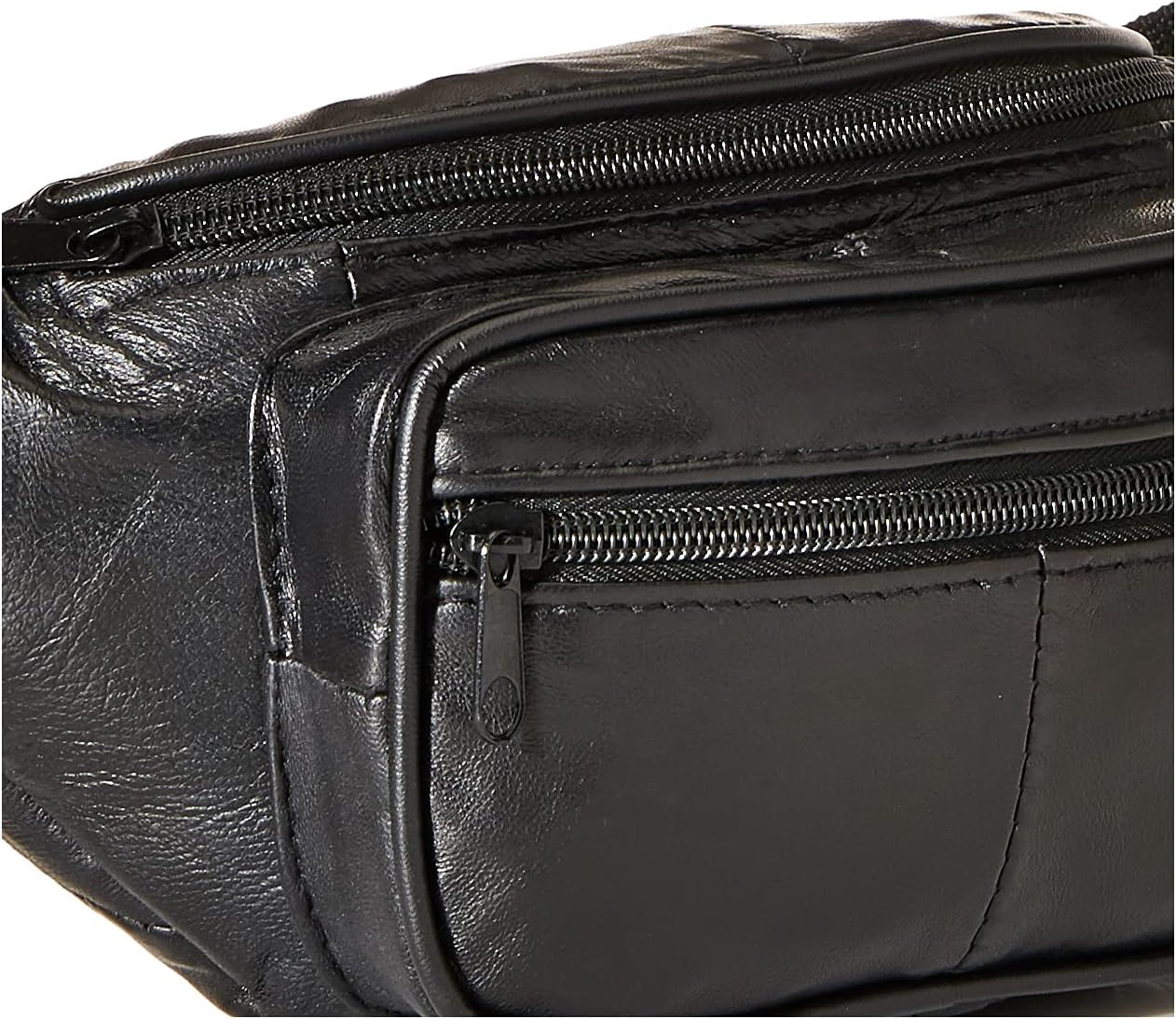 All leather original bike bag features a large main compartment, zippered front pouch pocket and adjustable nylon belt strap.