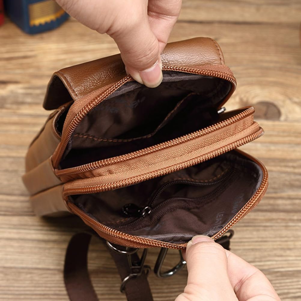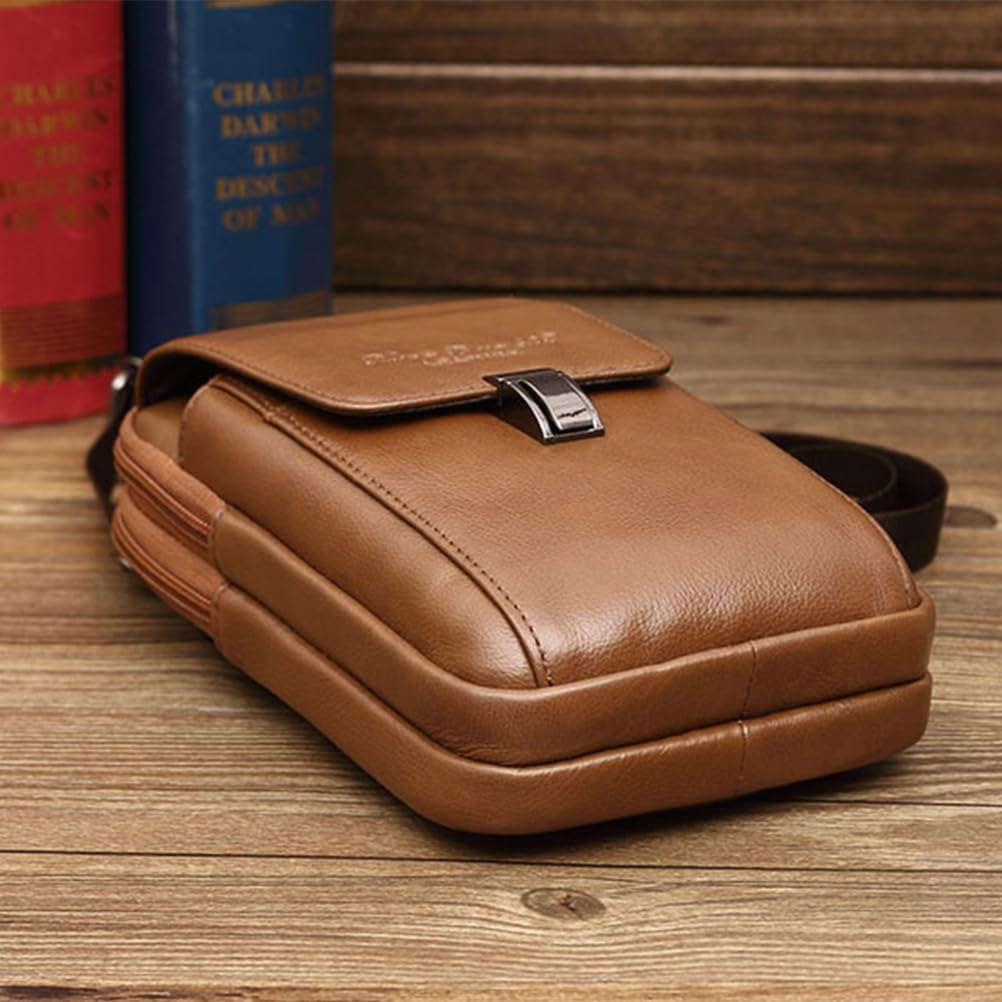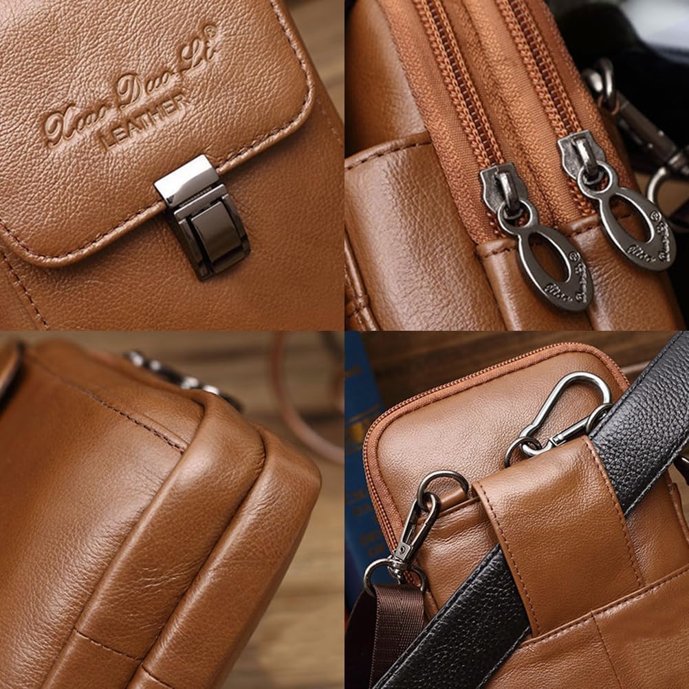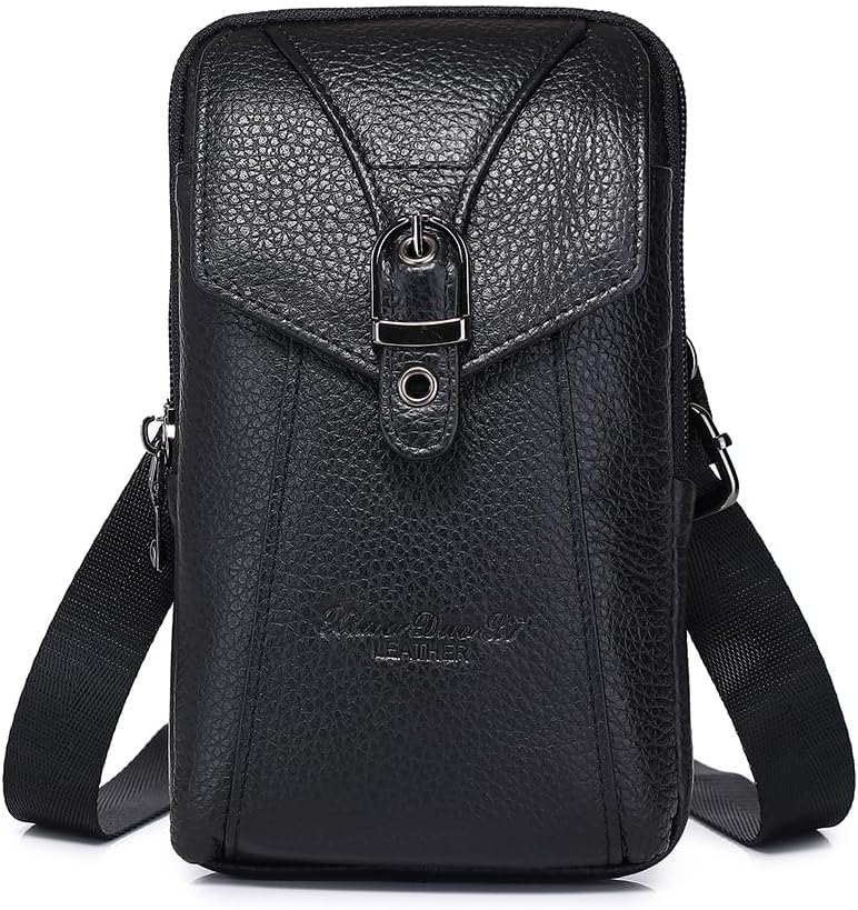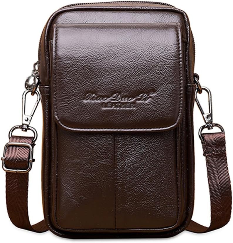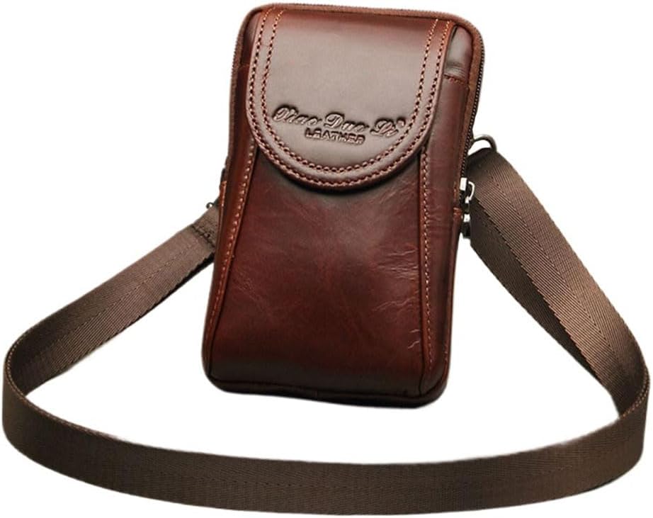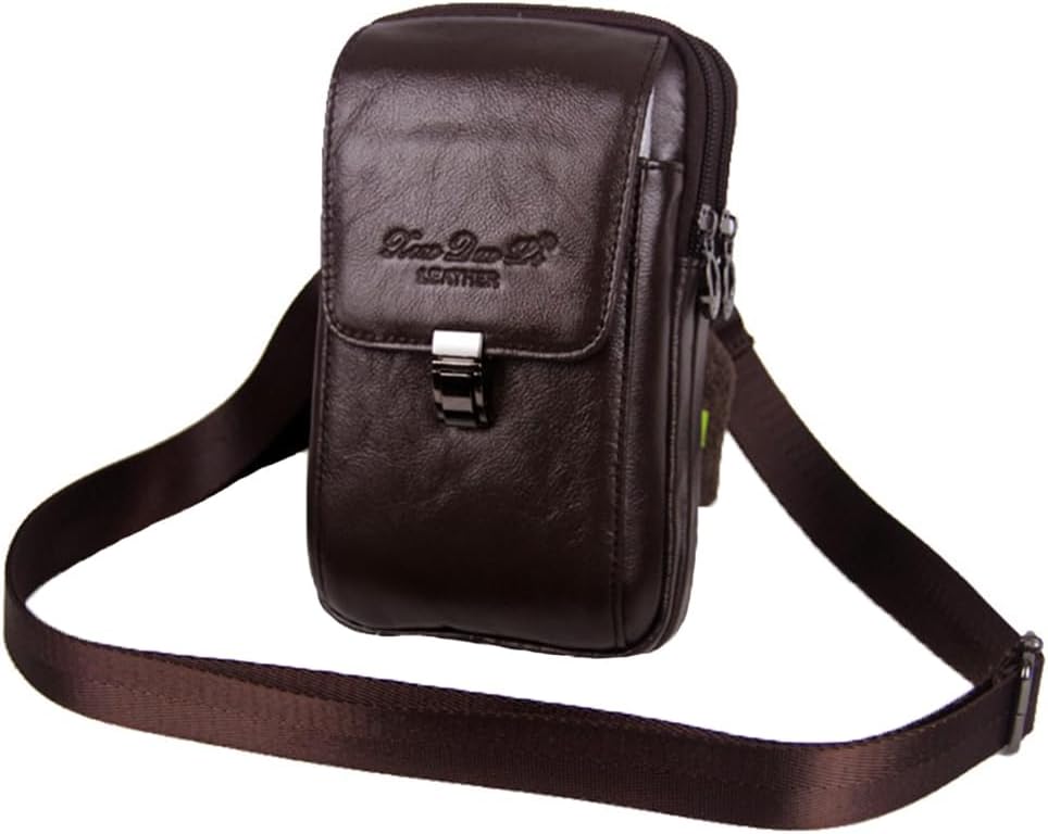 Leather Waist Belt Pouch/Shoulder Bag high quality top-grain cowhide leather.Leather and excellent workmanship, vintage, luxury. To achieve a harmonious match with the leather, the designer uses a stitching thread of the same color, which makes it more uniform and with calm temperament, suitable for business people. Model 7 Size: 4.33 X 1.96 x 7.08 inches/11 x 5 x 18cm. Perfect for cellphone screen 4.5~6.0 inch. Organization: 2 x main compartment with 1 inner zipper pocket + 1 inner zipper pocket, 2 x front pockets. Compatible with iPhone 15 Pro,15, 15 Plus 14, 13, 12, 11, XS Max, iPhone XS, iPhone XR, iPhone X, iPhone 8 Plus, Samsung Galaxy Note20, Note10, Note 9, Galaxy S20, S10 , S9 , S8 plus, Google Pixel, LG , Sony and any other cell phone . Convenience 3 Way Design With the belt loop or hook on back makes this bag can be used as a waist belt bag. Removable nylon strap with a adjustable buckle so you can wear it as a shoulder bag/cross body purse. it can also adjust the size down for something like an fanny pack if you do not have a belt. The classical design, not small & not big just right size can be used be as a clutch bag. Multifunctional outdoor waist pouch. It is also can be a wonderful and practical gift for Valentine'S Day, Father'S Day, Teachers' Day, Thanksgiving, Christmas, Birthday Or Almost Any Other Occasion.Waist pouch suits for working out, running, walking, hiking, everyday use, trips, jogging, beach, backpacking exercise, etc.
