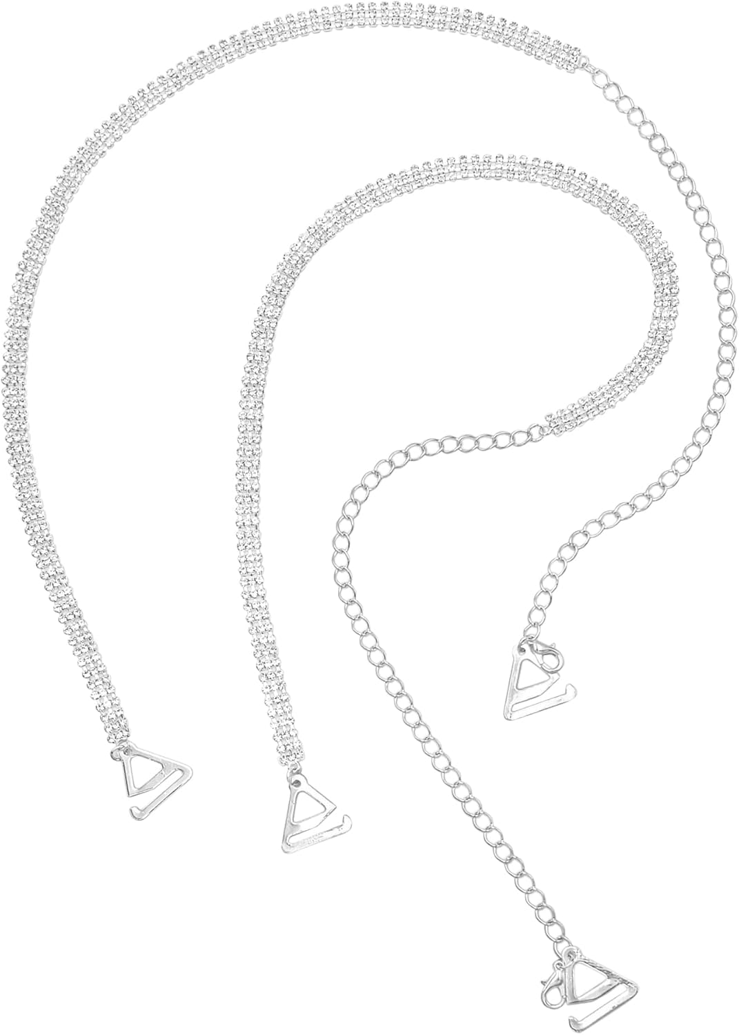 • Exquisite crystal rhinestone straps in a silver tone strand. Clear glass crystals in a 4 prong setting are stunning and sturdy. Unique straps can be attached to your favorite bra or cocktail dress to take your outfit to the next level of excitement!