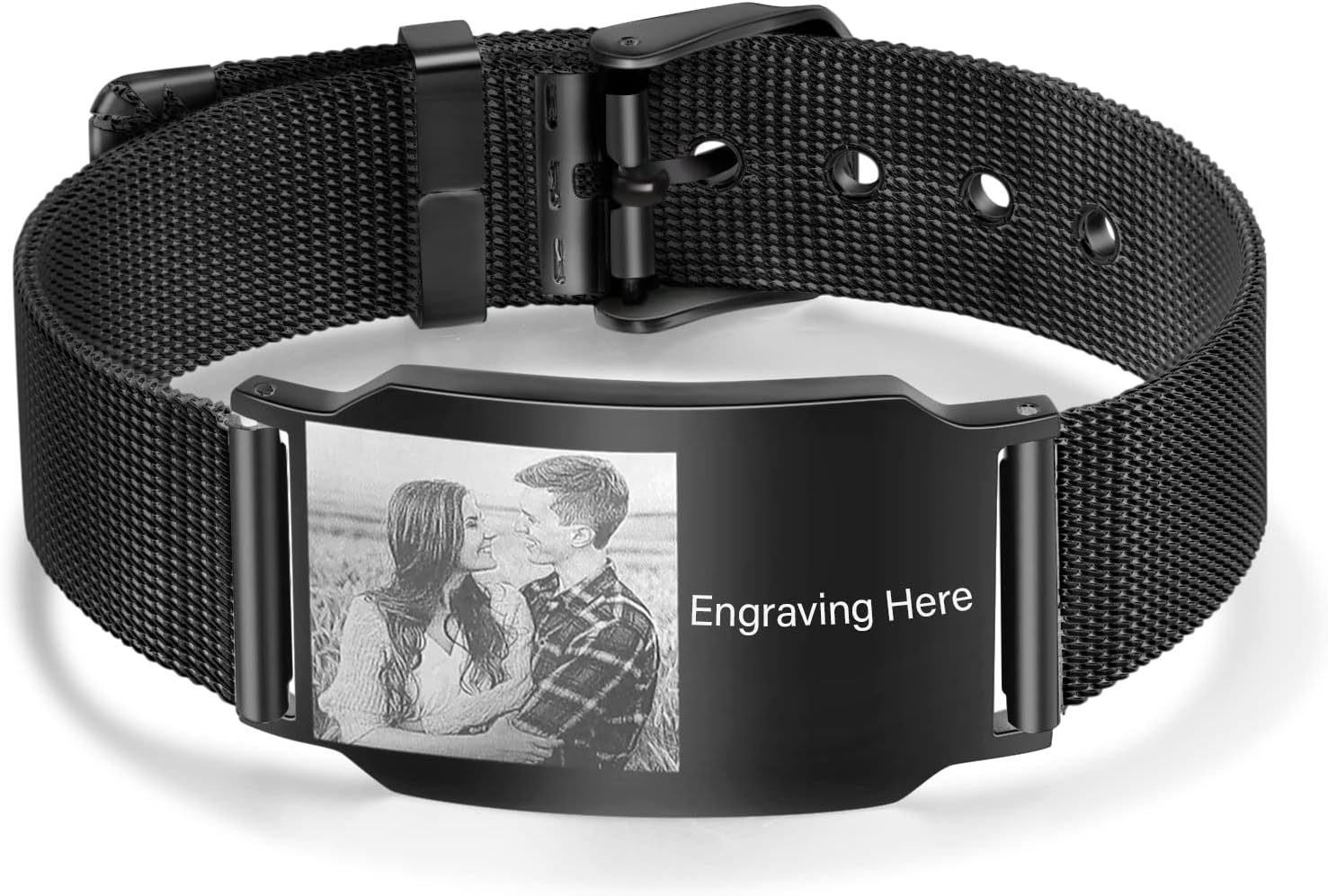 Personalized bracelet for men, Custom photo bracelet for men, Engraving message link bracelet, Stainless steel engraved name link bracelet gift for dad, father, boyfriend Material: Stainless Steel Color:Silver, Black, Rose Gold, Gold Perimeter: 24.5 cm/ 9.65 inch Weight: 44.2 g / 1.56 oz Customized Steps: ①Click on "Customize now" on the right ②Engraved with your photo or text ③Add to chart. OUR ∙ SERVICE Free Engravings Fast Delivery Free Tracking Service 60-day Money-back Guarantee 60-day Defective Exchange Service 🚚Shipping - Processing time: 2 - 3 days - Standard way: 7 - 10 business days after shipping - Expedited way: 4 - 6 business days after shipping Tips: If you're in urgent need, you can contact us directly, we'll try to prioritize your order & send your package out as soon as we can, ensuring it can be delivered as early as possible.