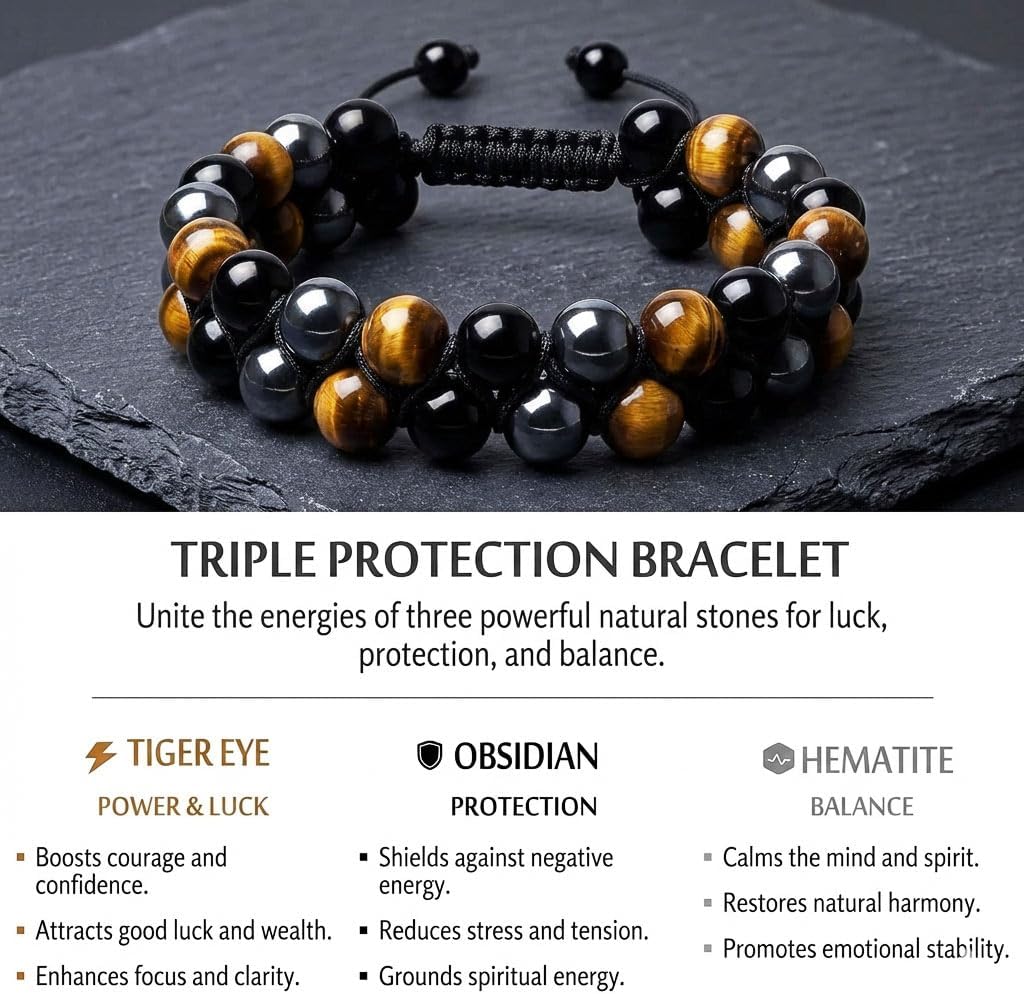 | Gem Type | tiger eye, hematite, obsidian |