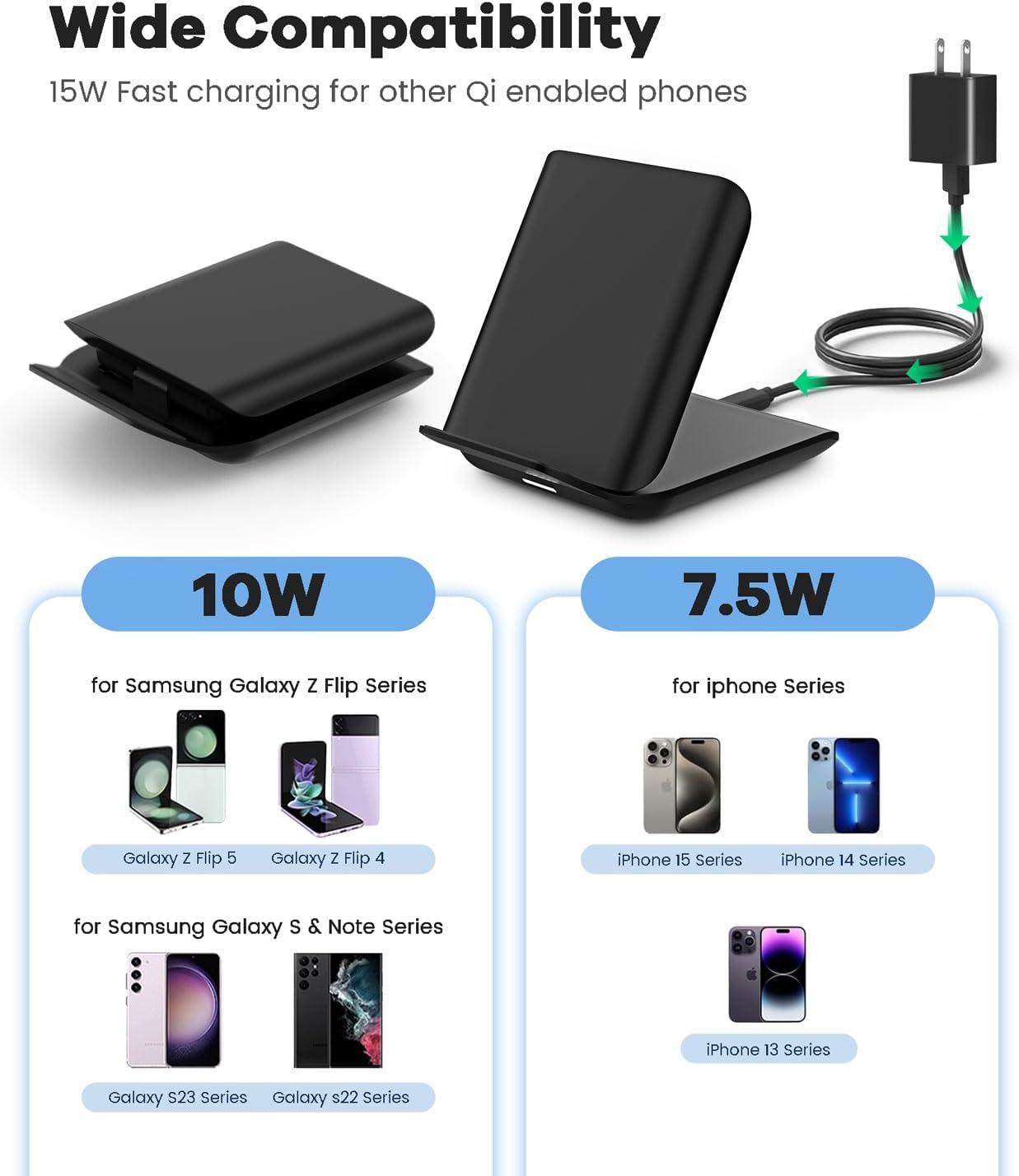 | BuiltIn Media | 1 x Z Flip Series Wireless Charger, 1 x PD20W charging adapter, 1 x USB -C Cable (39.4 inches), 1 x User Manual |