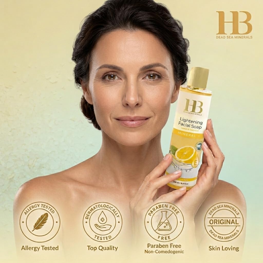 The Lightening Facial Soap is a unique soap based on a rich complex of active ingredients which delays enzyme effects causing the skin blemishes due to environmental effects, stress and hormonal changes. It includes Vitamin C, a proven and most important antioxidant component in the anti-aging process. The combination of ingredients, externally results in an overall lightening of skin pigmentations caused by Melanin surplus, hormonal changes, blemish scars, freckles and medication. The soap gently removes dead skin cells and cleans the skin with the assistance of fruit extracts which balance the skin, support the absorption of Lightening cream and grant it with an even shade and a sense of rejuvenation. Instructions for use: Use a very small amount of the soap, massage the face as with normal soap, wait a few minutes and then rinse the skin well. Take care to avoid contact with the eyes. Use morning and evening. Afterwards, apply an H&B skin lightening cream. When exposed to the sun it is essential to apply sun tan lotion with a protection factor.