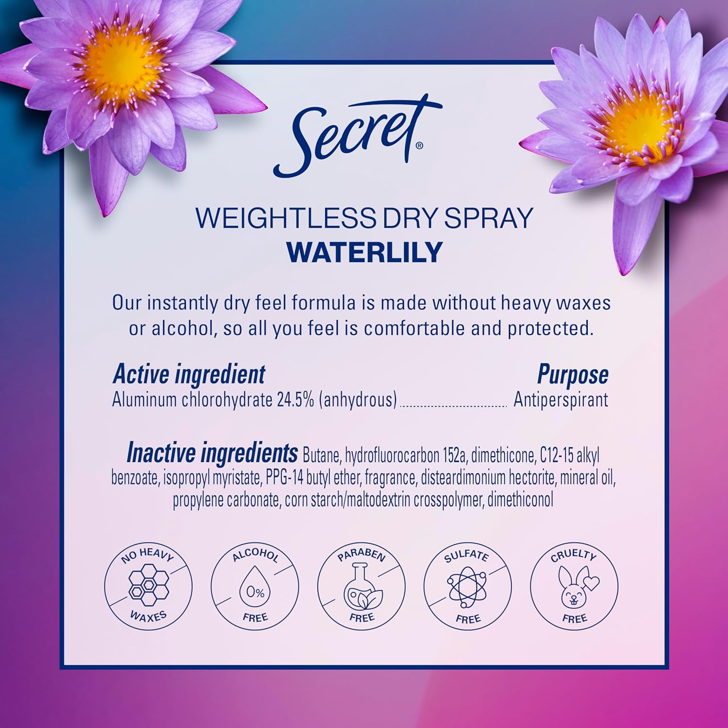 Your demanding life deserves an anti-perspirant deodorant that can keep up with it. Secret Dry Antiperspirant Deodorant for women, is exactly what you need to take on whatever life throws at you. Its powerful yet gentle on skin 48-hour sweat and odor protection gets to work instantly, and dries just as fast, giving you weightless protection from dawn till dusk. And because you care about what you put on your body, we also have pH balancing minerals. From the gym to date night, feel extra-confident with the power of 48-hour sweat and odor protection.