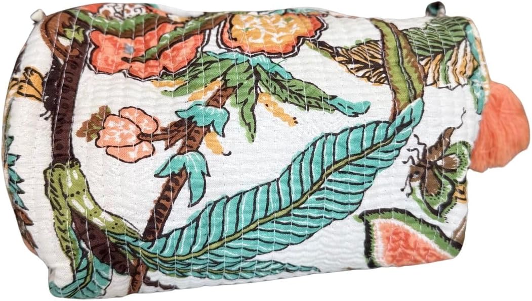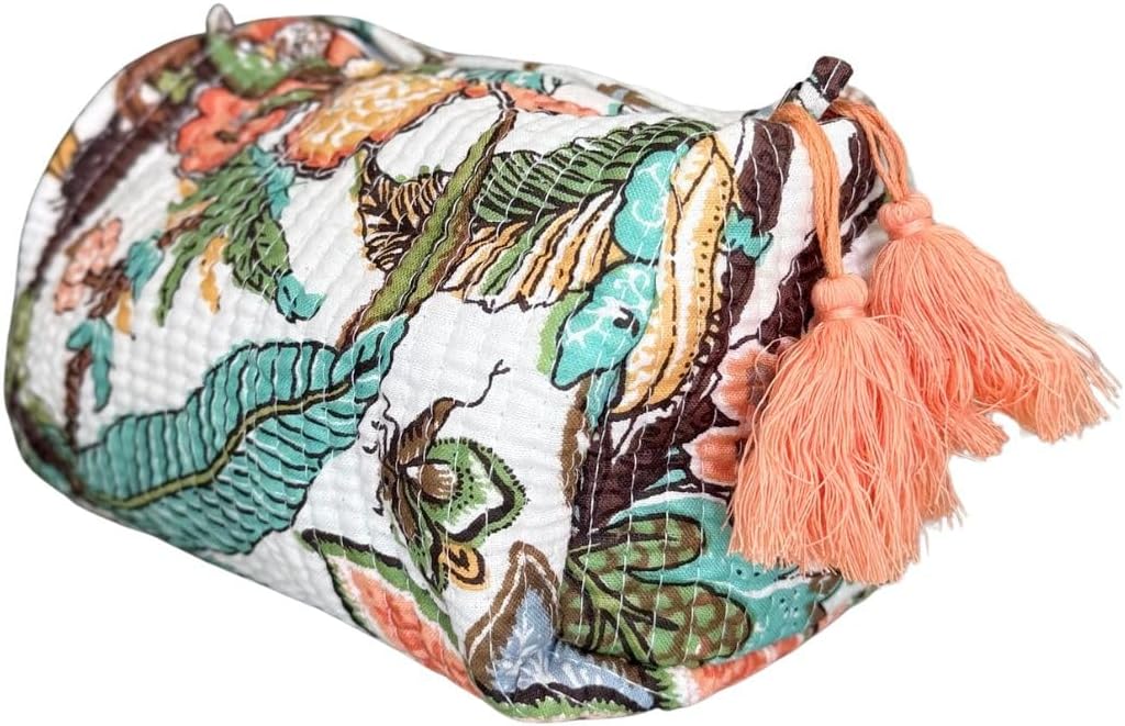 Stay organized in style with our hand block printed toiletry pouch, made from 100% cotton and crafted by skilled artisans. Featuring traditional floral motifs printed using authentic Indian block printing techniques, each piece has a unique and vibrant look. Available in three convenient sizes—Small (6.5x4x3 inch), Medium (7x5x4 inch), and Large (9x7x4 inch)—this pouch is perfect for storing toiletries, cosmetics, travel accessories, or even chargers and cables. The secure zipper closure keeps your items in place, while the waterproof inner lining adds an extra layer of protection. Lightweight, foldable, and easy to clean, this cotton block print pouch blends functionality and craftsmanship, making it a colorful and versatile addition to your daily routine or travel gear.