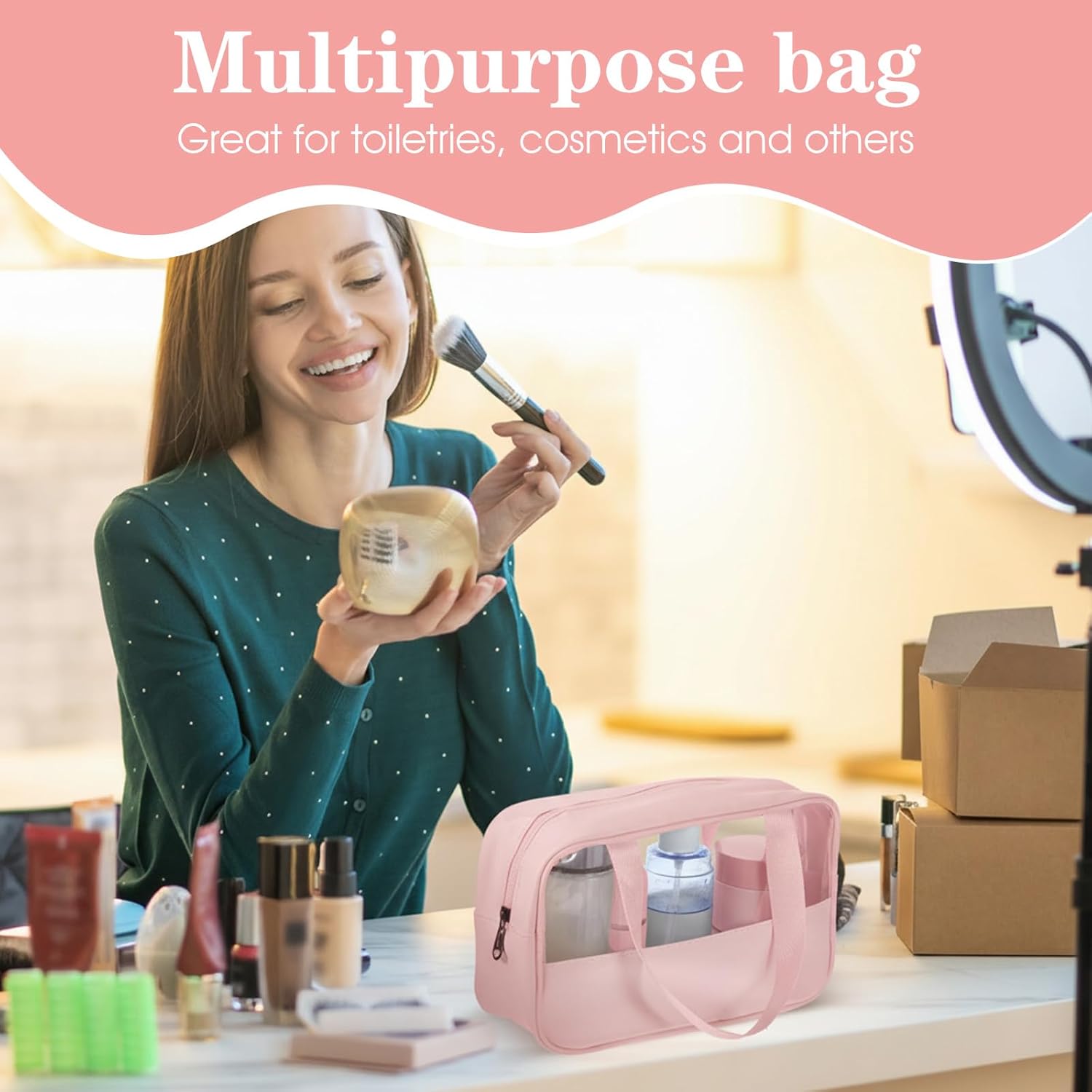 Features: This 9-piece pink makeup bag bulk set offers versatile toiletry bag bulk solutions with cosmetic bags bulk organization. Measuring 10.2 x 6.3 x 2.8 inches each, these waterproof PVC bags feature translucent design for easy content identification, sturdy zippers, and convenient handles for travel and home use.Specifications:Material: PVCColor: PinkSize: As showPackage includes:9 x Translucent Make up BagsNotes:Manual measurement, please allow slight errors on size.The color may exist a slight difference due to different screen displays.