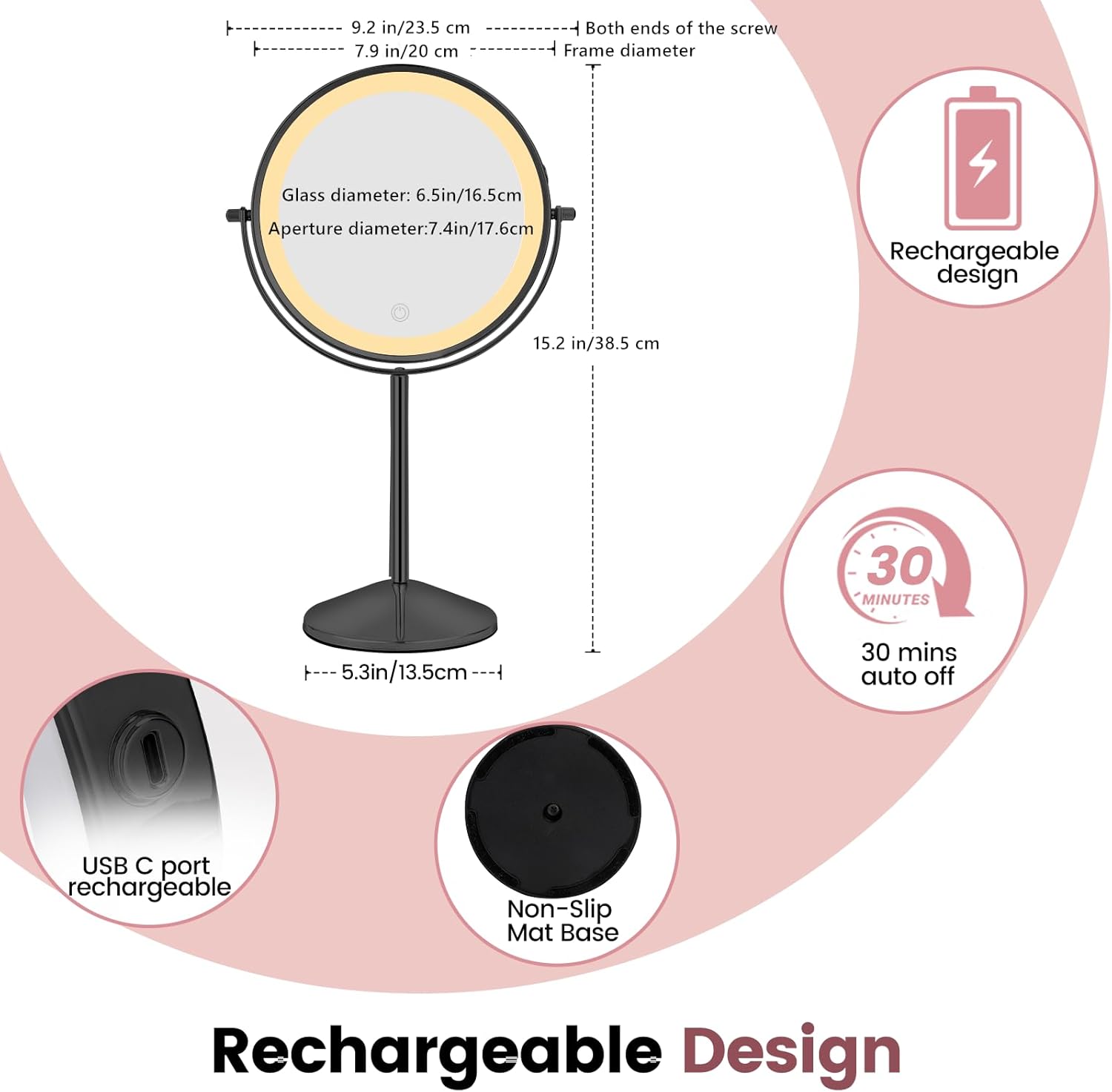 | Included Components | LED Makeup Mirror, Mirror Base, Type-C Charging Cable, User Manual |