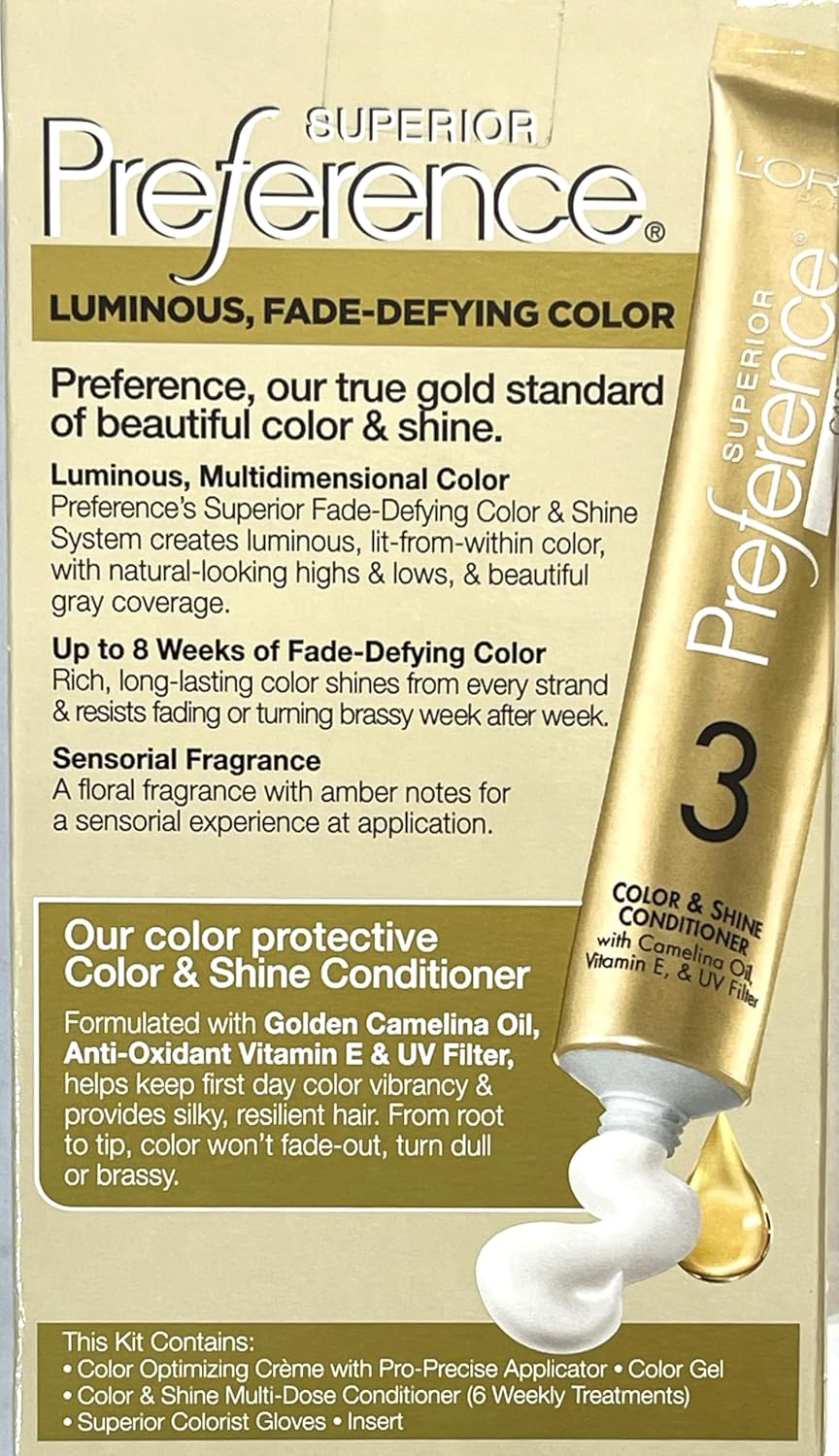 Rich Luminous Conditioning Colorant. Optimized fade-defying system. Preference with Optimized Fade-Defying System, creates a rich long-lasting color spectrum with luminosity, shine and beautiful gray coverage. Care Supreme Conditioner helps lock in first