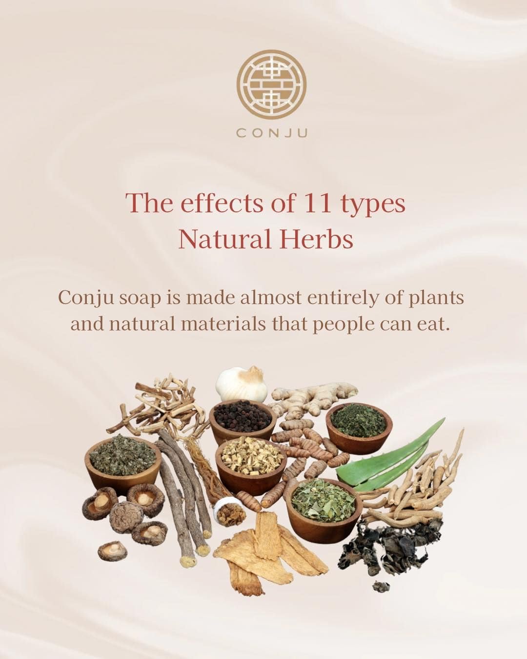 CONJU PRINCESS SOAP Licorice extract, mugwort extract, red ginseng extract All the extracts. Product Characteristic 99.9% natural soap manufactured by carefully choosing only natural ingredient. All the types of skin can be available with no difficulty due to no excessive irritation to the skin or no moisture deprivation. Abundant & fine bubbles cleanse even the wastes into pores perfectly. How to use Coat lukewarm water on your hands and make bubbles with using bubble net and then wash & rinse it with lukewarm water like massage.