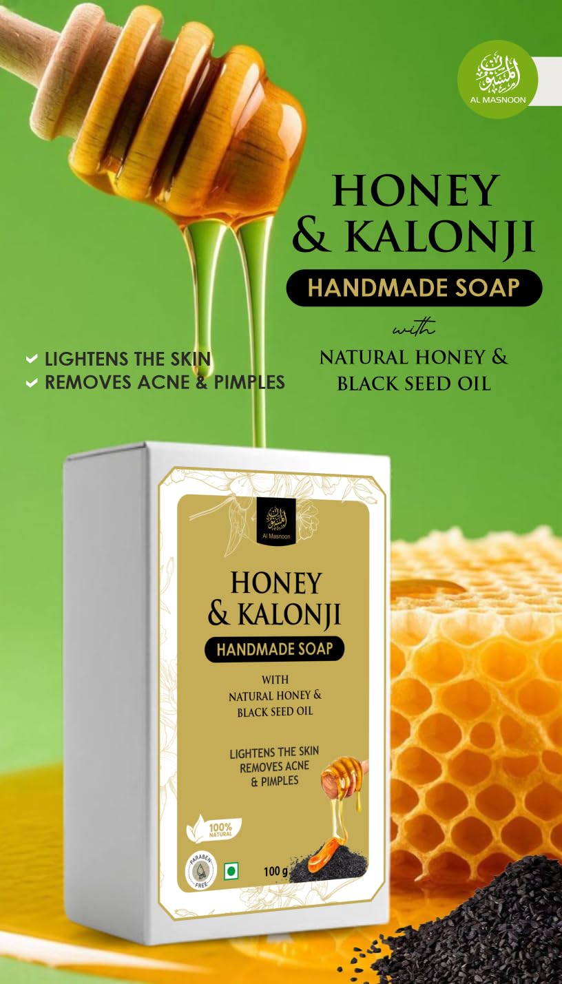 Natural handmade soap enriched with pure honey and black seed oil to gently cleanse and nourish all skin types.